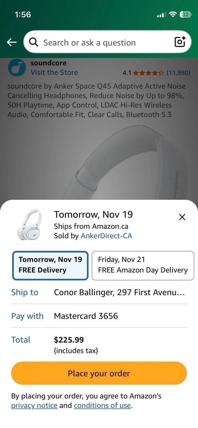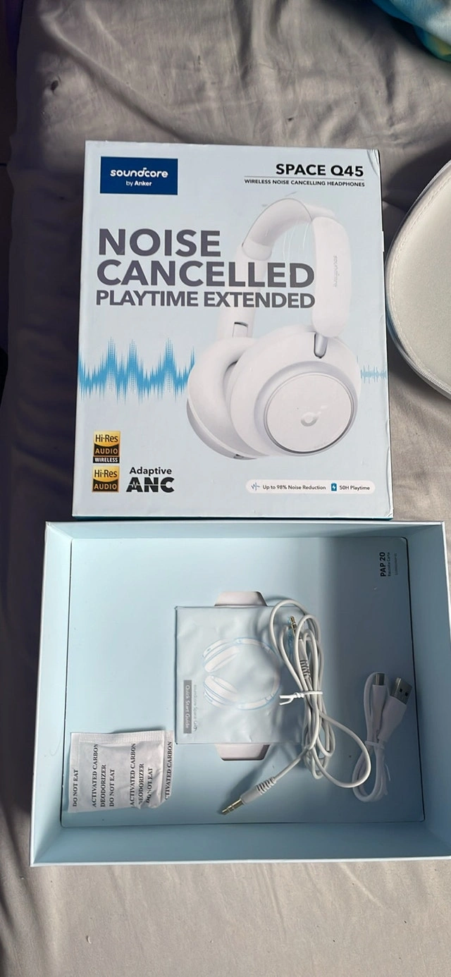 Soundcore Space Q45 headphones. Used for about a month, barely used. My better pair just came back from repair. The box is almost like new, and everything is included. Bought on Amazon for $225 with tax. Selling for $180. Pickup in the Glebe near downtown Ottawa.