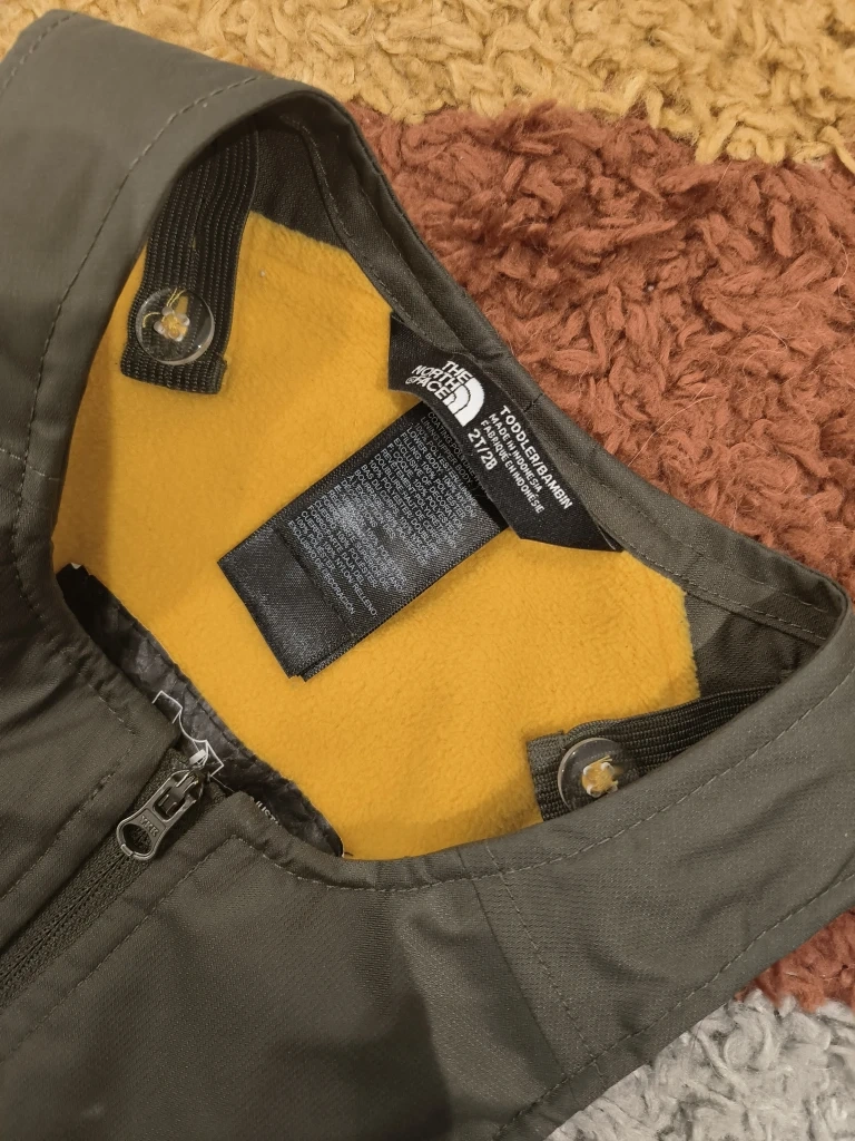 Keep your little one warm this winter with this adorable The North Face snowsuit! It's a toddler size 2T, perfect for ages 2-3. The snowsuit features a camo pattern on the bottom and a solid olive green top, with a cozy yellow fleece lining. Great for playing in the snow or just staying warm on chilly days!
