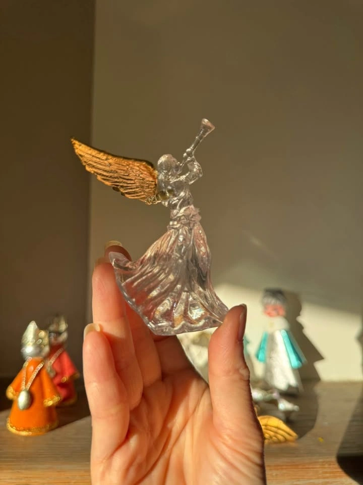 Vintage Christmas Ornament Lot - Retro 1950s 1960s Angels & Kings 👑 Check out my other Christmas ornament listings. A beautiful lot of 13 vintage Christmas ornaments, perfect for adding a touch of mid-century modern nostalgia to your holiday decor. The Lot Includes: 1 Rare Angel tree topper: With painted face, tinsel hair, and silver/teal brocade dress. (Likely 1950s/1960s) 1 Gold Foil Angel: With painted face, tinsel (1950s) 2 Rare Felt Kings/Wise Men: One orange, one red, with flocked felt robes and silver plastic/metal crowns/heads. 5 Clear Angels/Heralds: Molded clear plastic angel figurines, with golden wings 4 Cupid/Cherub/Angel Figurines: Including two gold, two white/clear Condition: All pieces are in vintage, pre-owned condition, showing expected wear and patina for their age, which adds to their charm. Porch pick up Christie St and St. Clair West Ave (10 min walk from St. Clair WEST Subway station). Cash only Vintage Christmas ornaments lot Mid-Century Modern Christmas Retro holiday decor 1950s 1960s Christmas Felt Christmas figurines Plastic Lucite Angel ornaments Wise Men King ornaments holt Howard