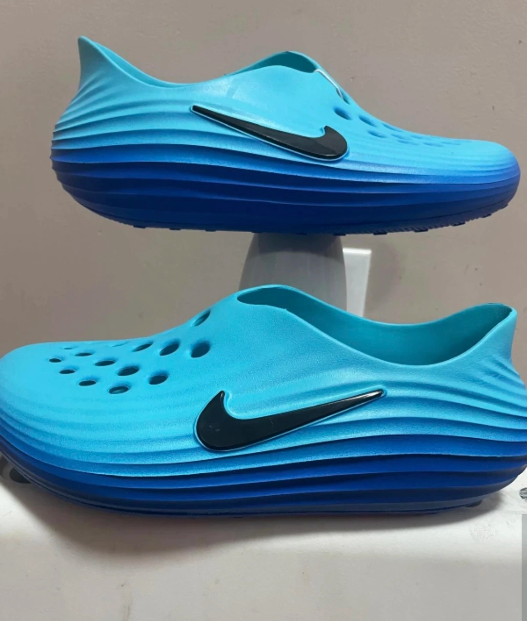 Selling a pair of Nike Calm Mules in size 9. They are super comfy and great for everyday wear! Available in black, light blue and blue shades