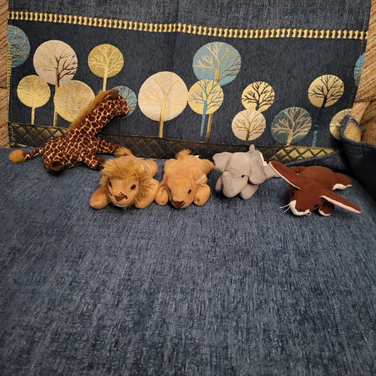 Selling a collection of TY adorable Beanie babies! There's a cute giraffe with brown spots, a cuddly lion, and a sweet elephant, bear and bunny. They're all in great condition and ready for a new home! $ 5 each I have 2 of the elephant And 2 giraffes