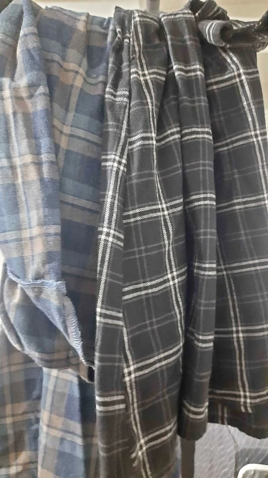 Flannel blue shirt dress: sleeve 19", shoulder 16", length 38", size 42