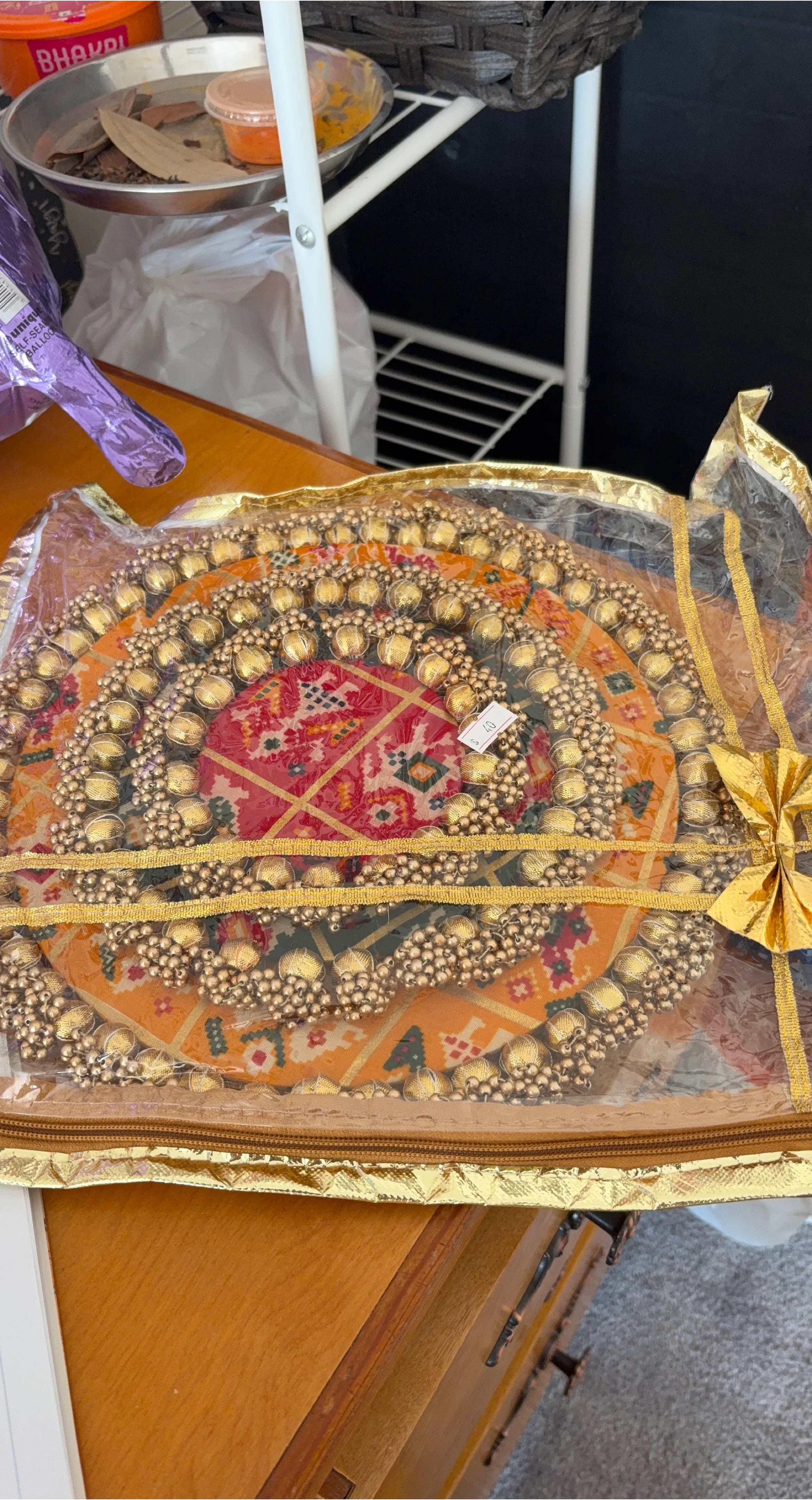 Selling a decorative pooja thali plate, perfect for religious ceremonies or home decor. It comes in its original packaging.