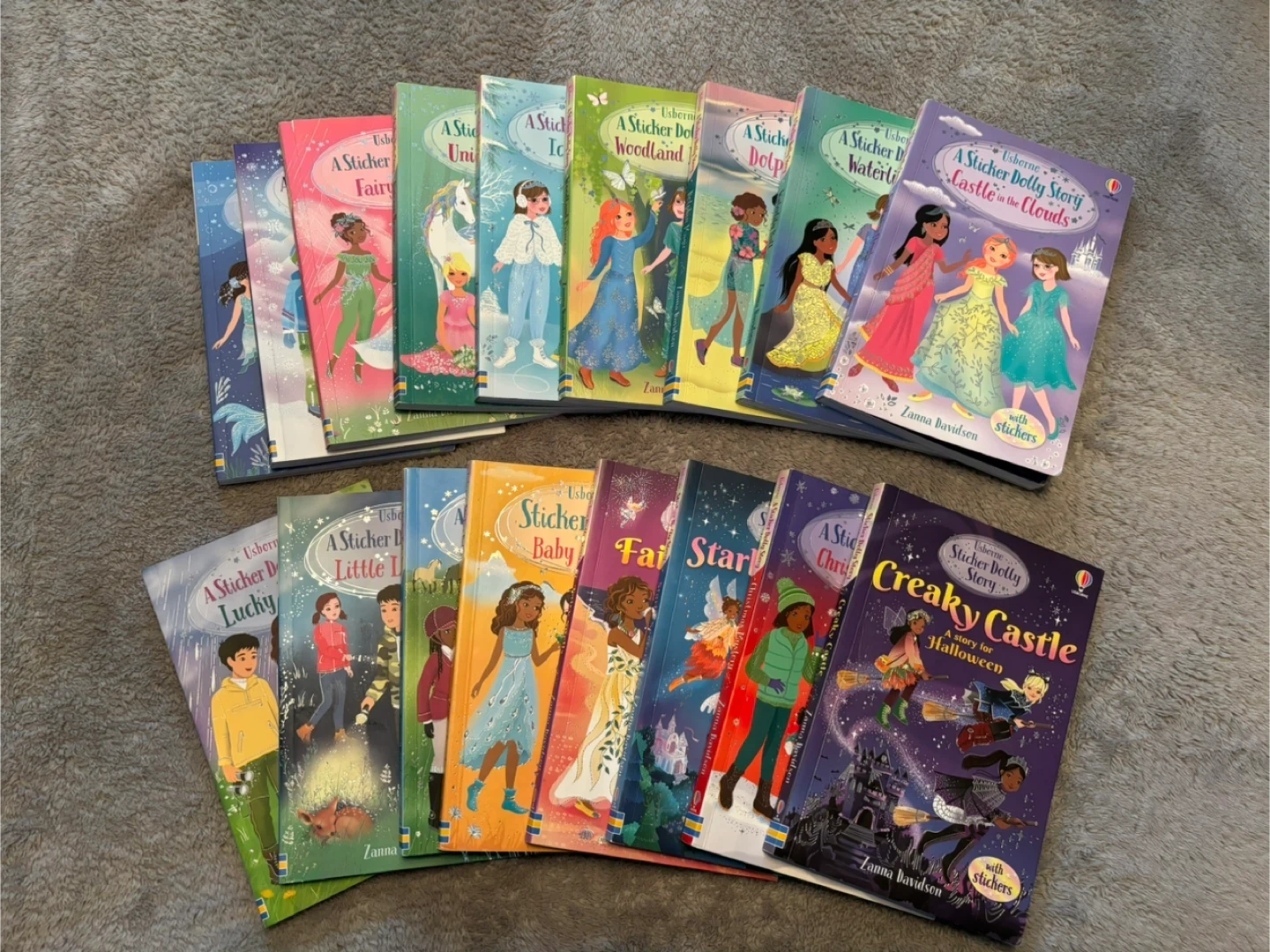Selling a collection of 17 Usborne Sticker Dolly Story books! These are great for kids who love to read and play with stickers. Each book features a fun story and comes with stickers to complete the scenes. Titles include Fairy, Unicorn, Woodland, Dolphin, Castle in the Clouds, Lucky, Little Lady, Baby, Fairy Stars, Christmas, and Creaky Castle, etc.