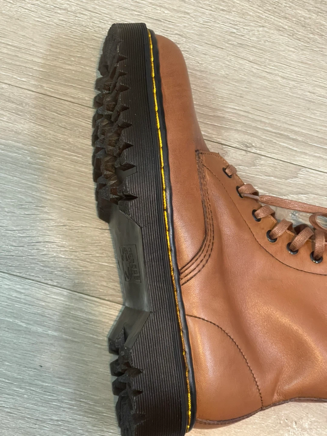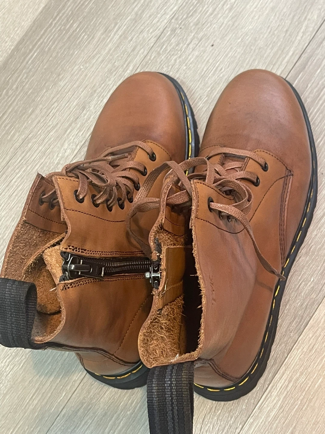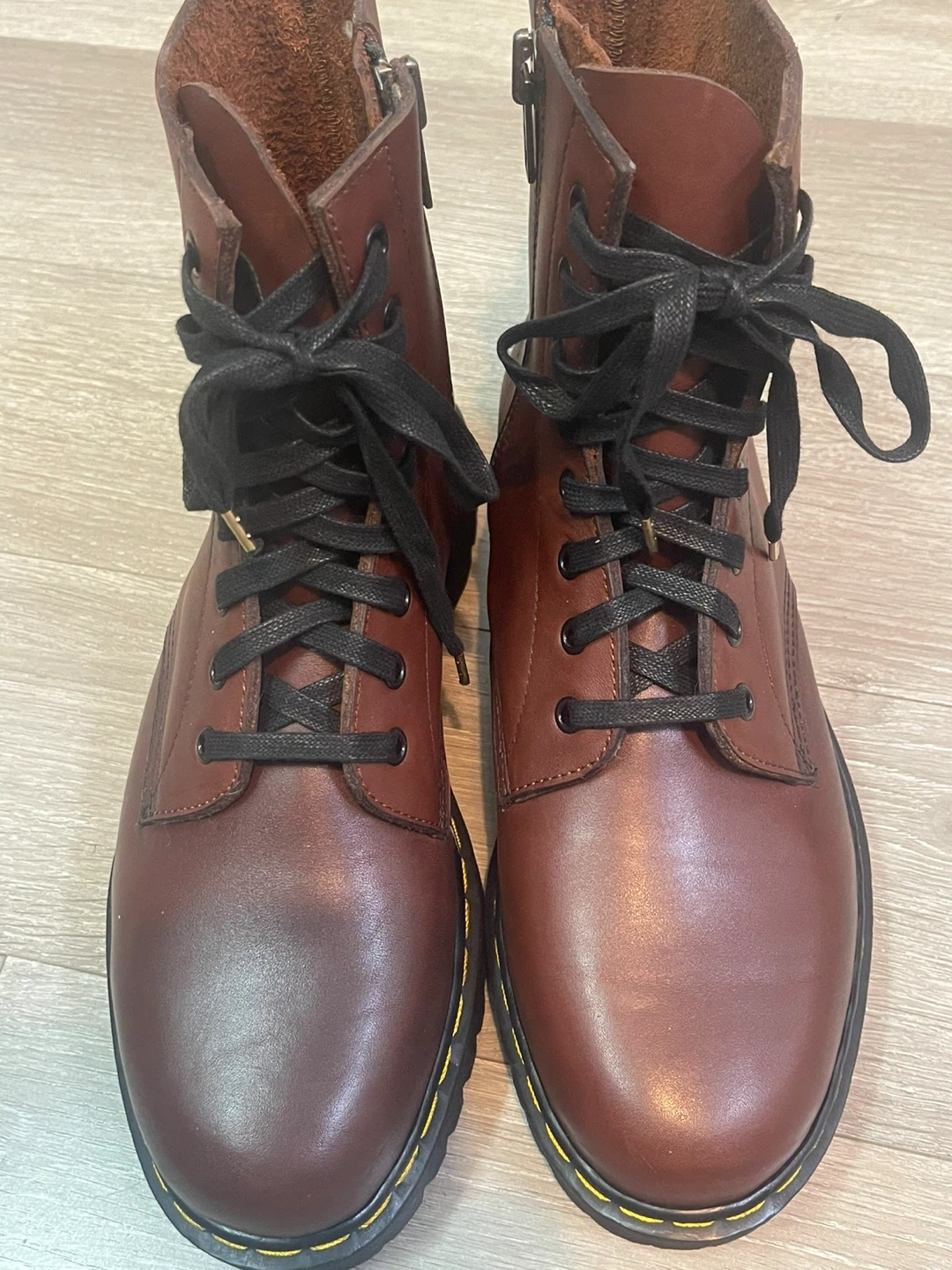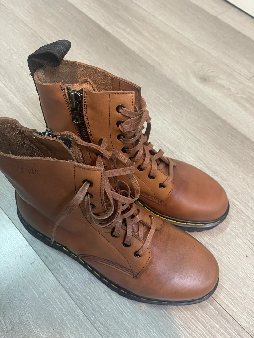 These stylish TMK ankle boots are made of genuine brown leather. They feature a lace-up design with a side zipper for easy on and off. The boots have a comfortable fit and are perfect for everyday wear. They are in great condition and ready for a new home