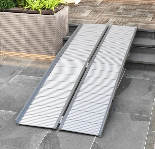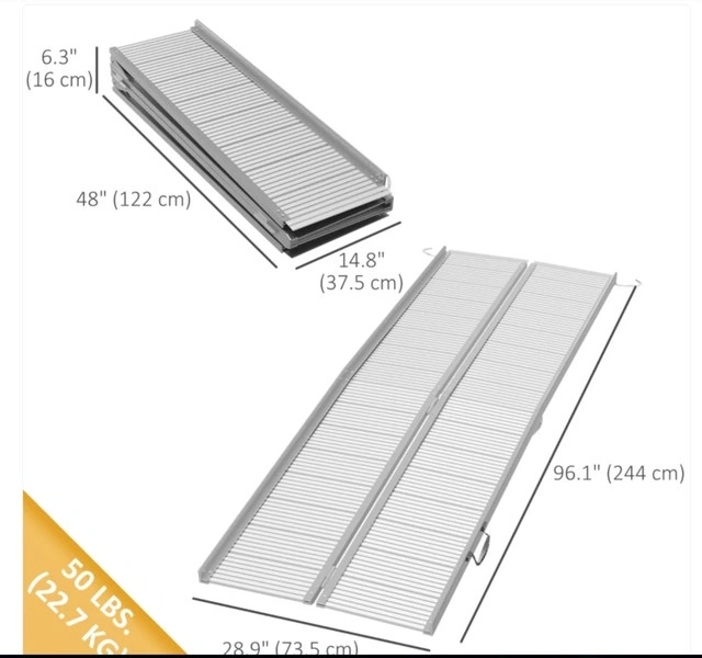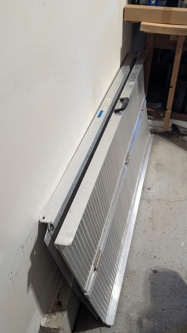 8' Foldable Handicap Ramp for Home, Steps, Doorways, Aluminum Portable Wheelchair Ramp, Textured Threshold Ramp, Silver. 375.00 OBO