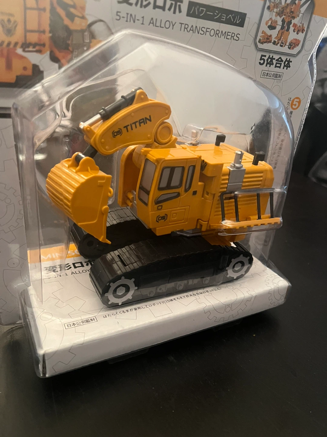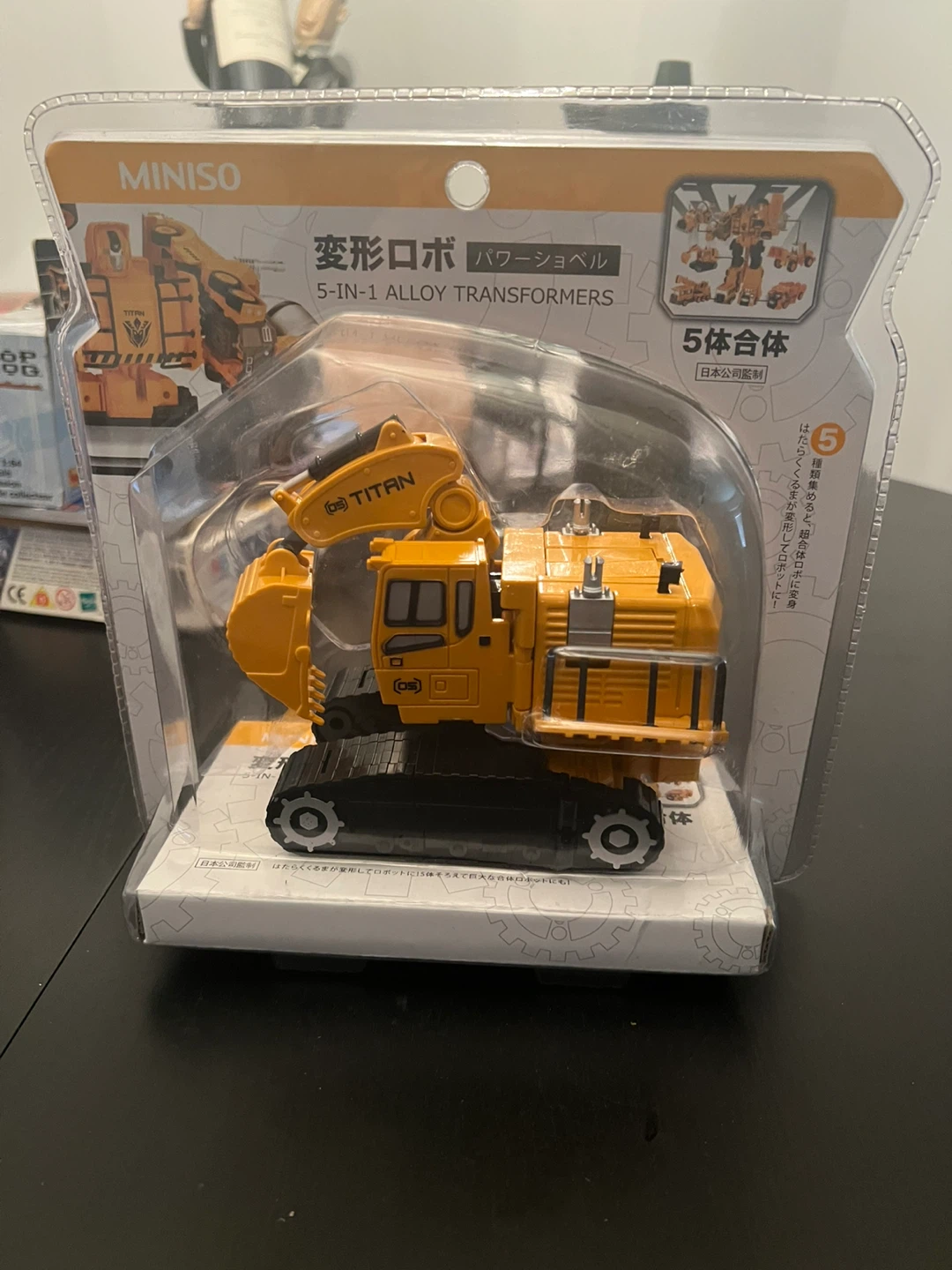 Selling a Miniso 5-in-1 Alloy Transformers toy! This is the excavator variant, and it can function as an independent construction vehicle. It can also combine with four other vehicles to form a large robot called Titan. The toy is made with alloy parts.