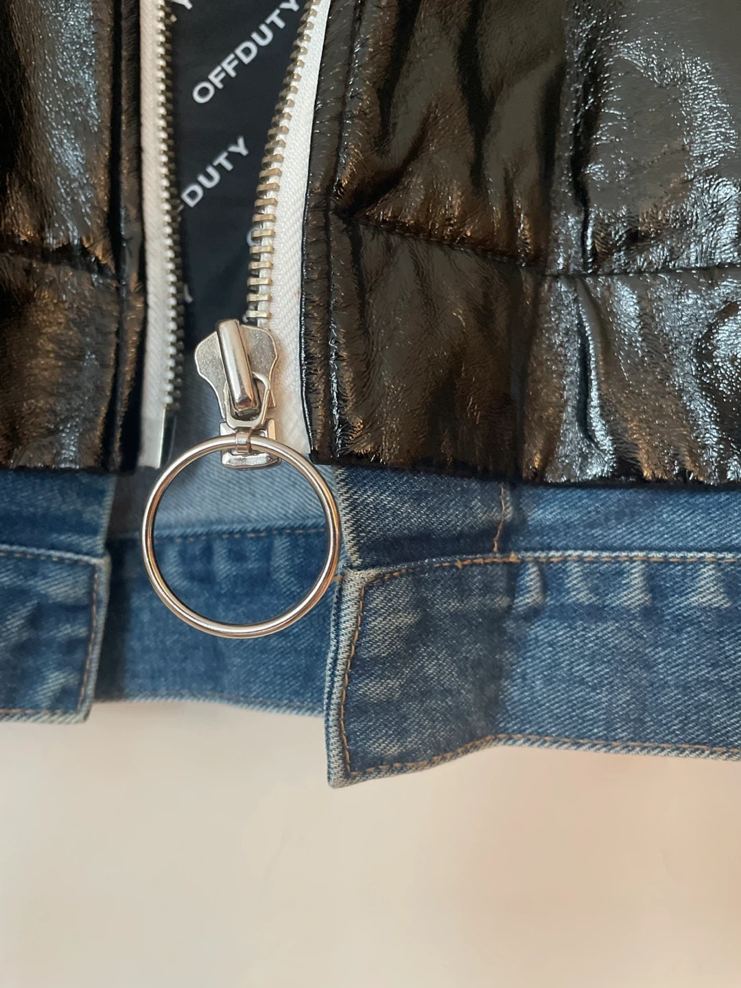 MOS EDITION black bomber jacket with unique ring detail on the zipper. Does super well in the rain-great condition!