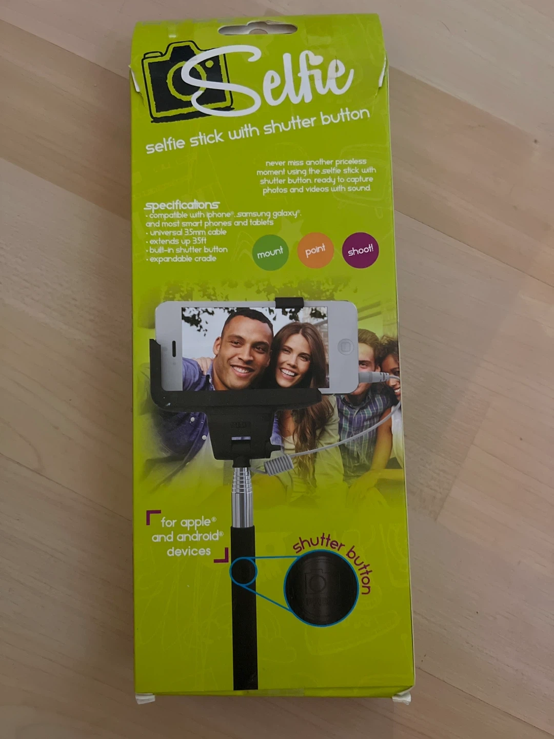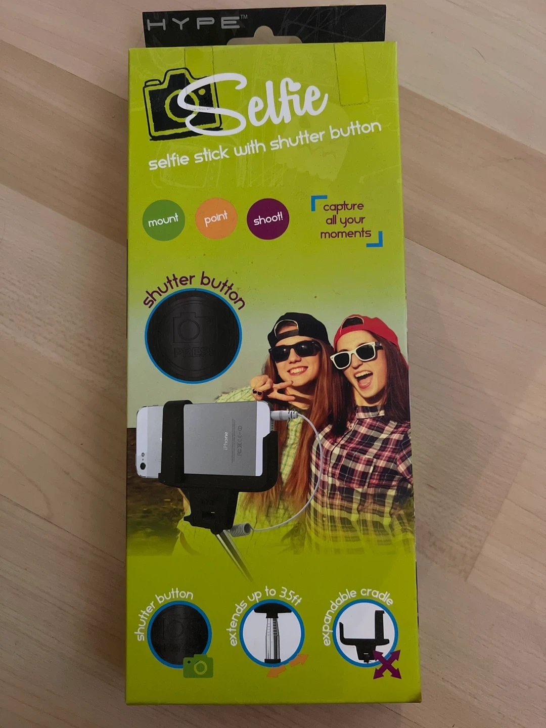 Selling a Hype selfie stick with a shutter button! It's perfect for capturing all your moments. The selfie stick extends up to 35ft and has an expandable cradle. It's compatible with Apple and Android devices