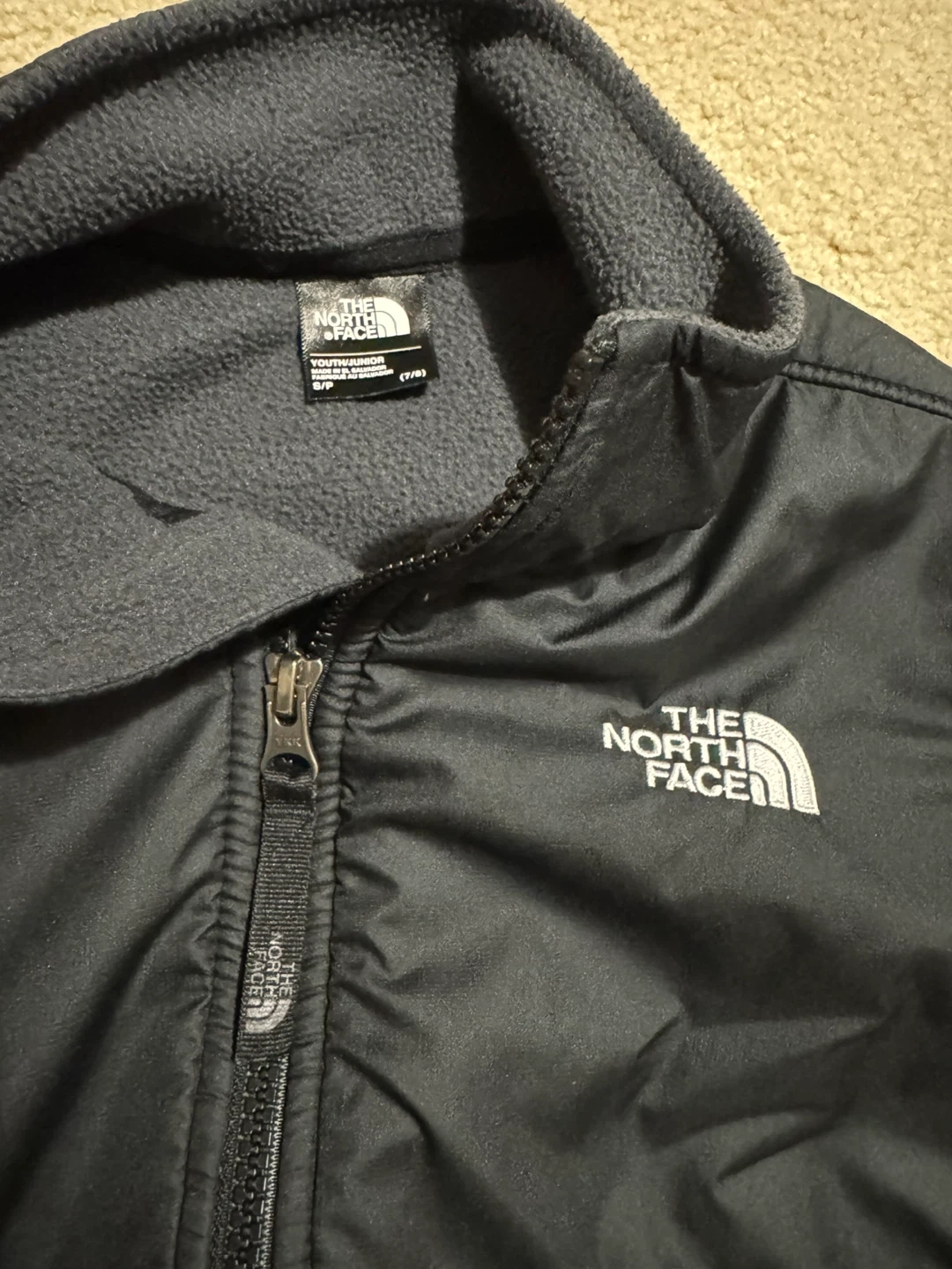 Selling a The North Face Youth fleece jacket in size S (7/8). It's in great condition and perfect for keeping your little one warm during cooler weather! The jacket features a cozy fleece material and a durable design.