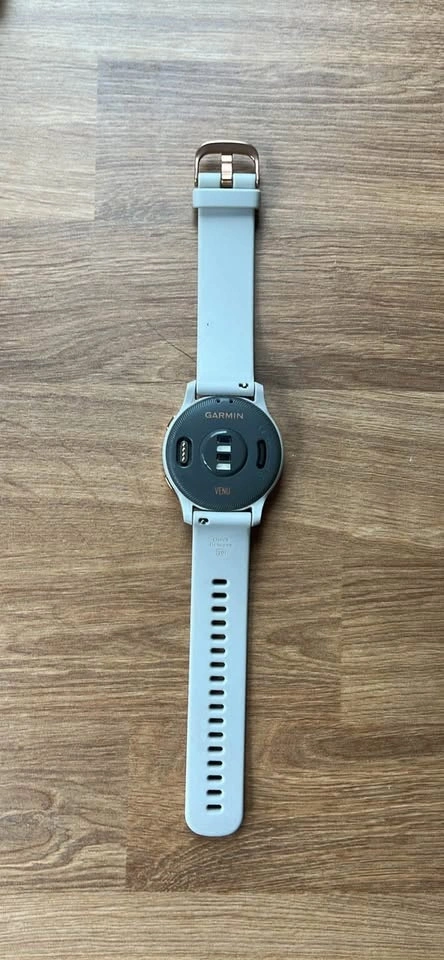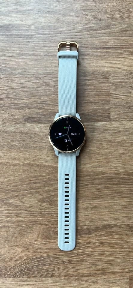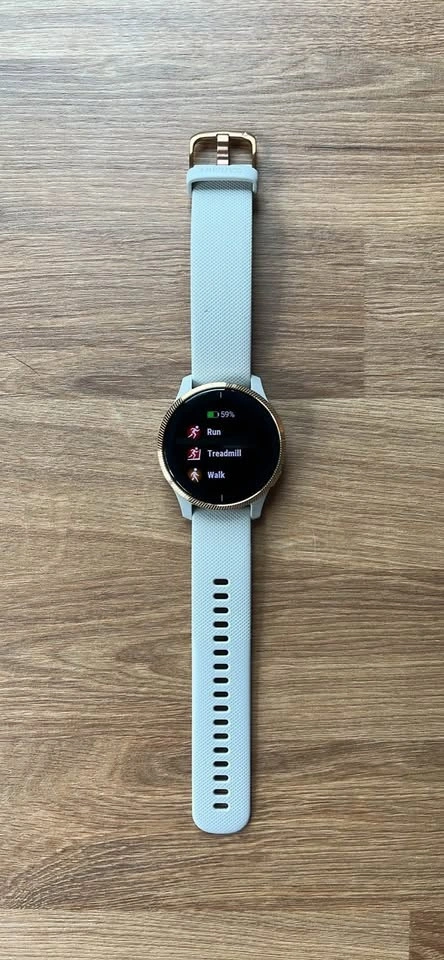 Selling my Garmin Venu smartwatch in excellent condition. Features a beautiful rose gold bezel and beige silicone band, perfect for everyday wear or workouts. Bright AMOLED touchscreen, built-in GPS, heart-rate monitoring, sleep tracking, Pulse Ox, music storage, and tons of sport modes.
