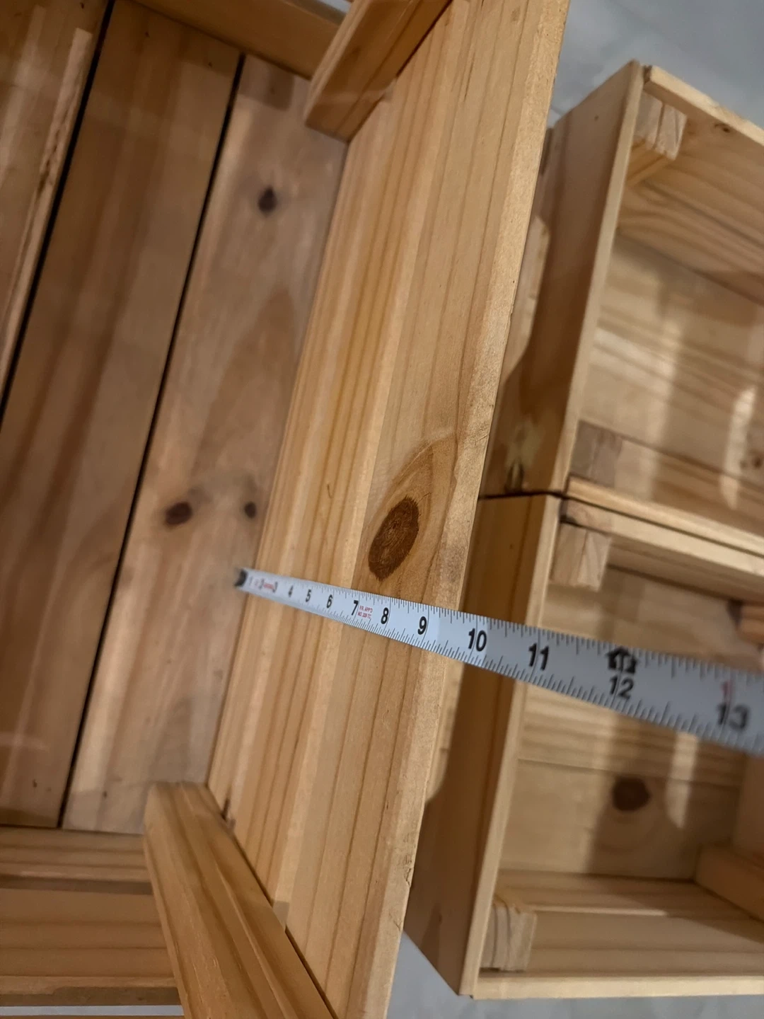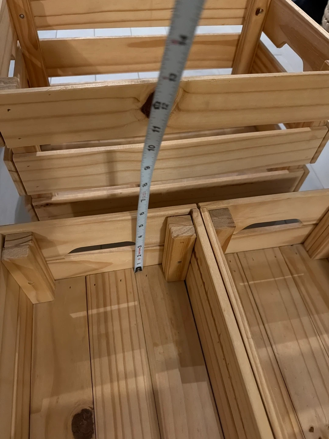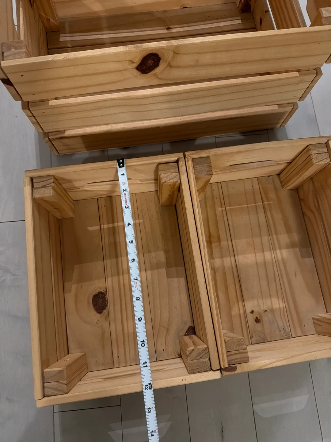 Selling a set of three wooden storage crates. The approximate dimensions are 18 inches tall, 12 inches wide, and 10 inches deep. They're perfect for organizing various items around the house!