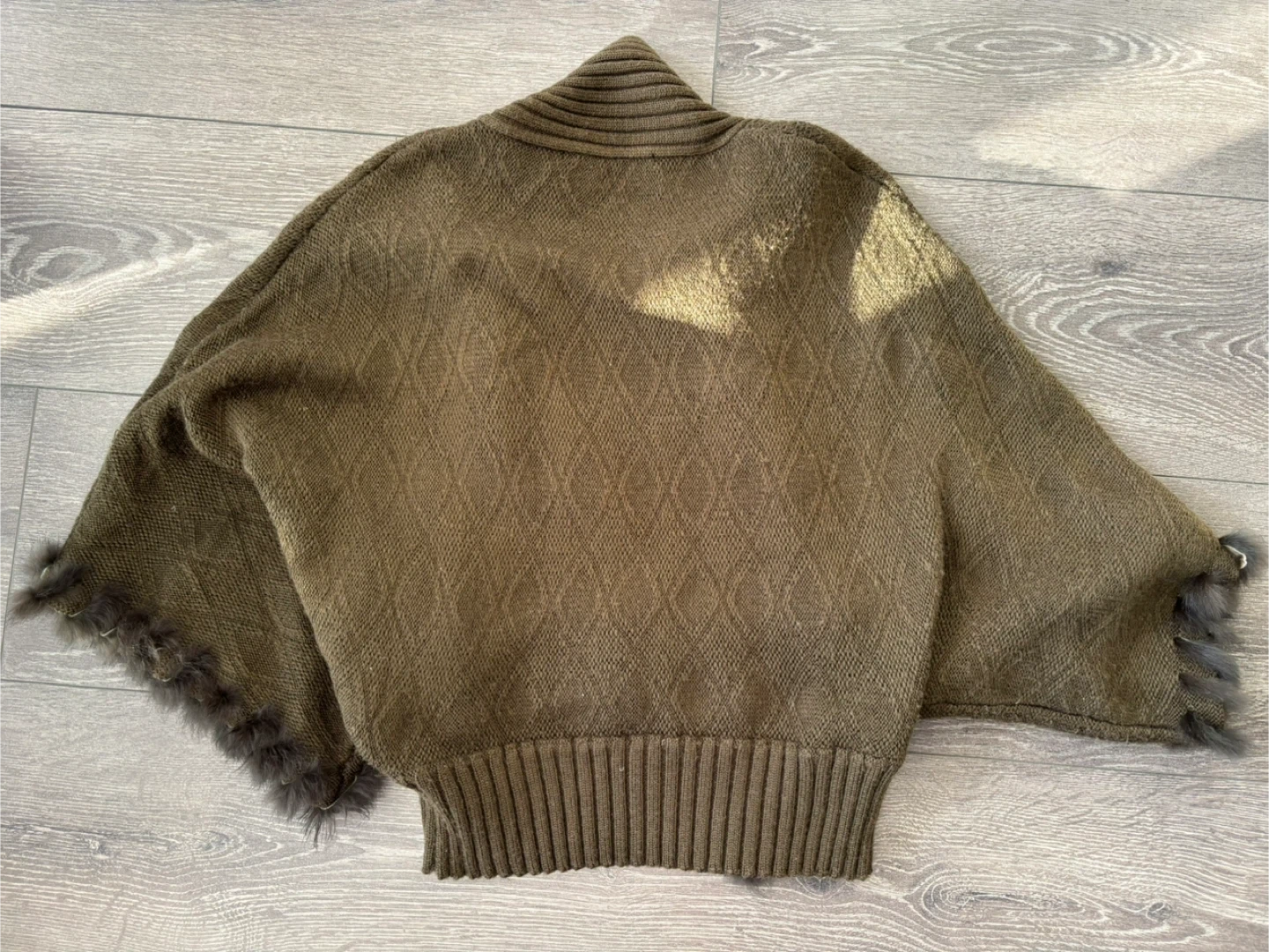 Marc Jacobs Sweater with fur scarf, beautiful elegant knit with fur trim detailing at both sleeves & waistline knitted waistband in olive green. It's in great condition, seldom worn nicely hand washed dated on November 20th