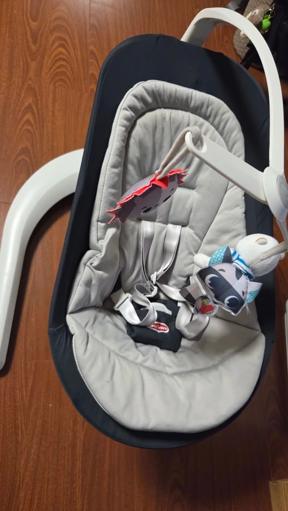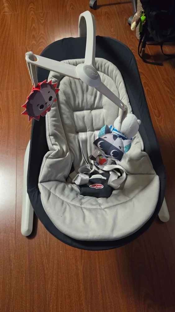 Selling a Tiny Love baby bouncer in great condition! It has a grey seat with a black frame, plus a toy bar with cute animal toys. Perfect for keeping your little one entertained and comfortable