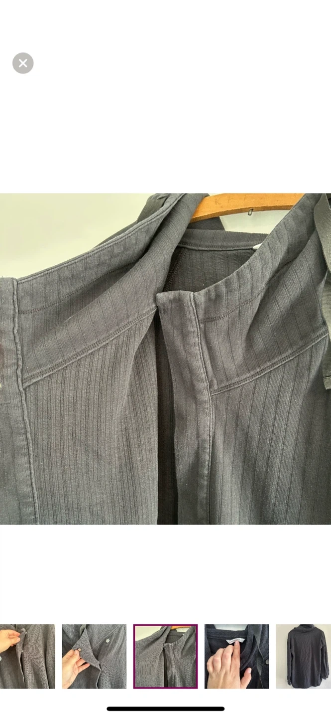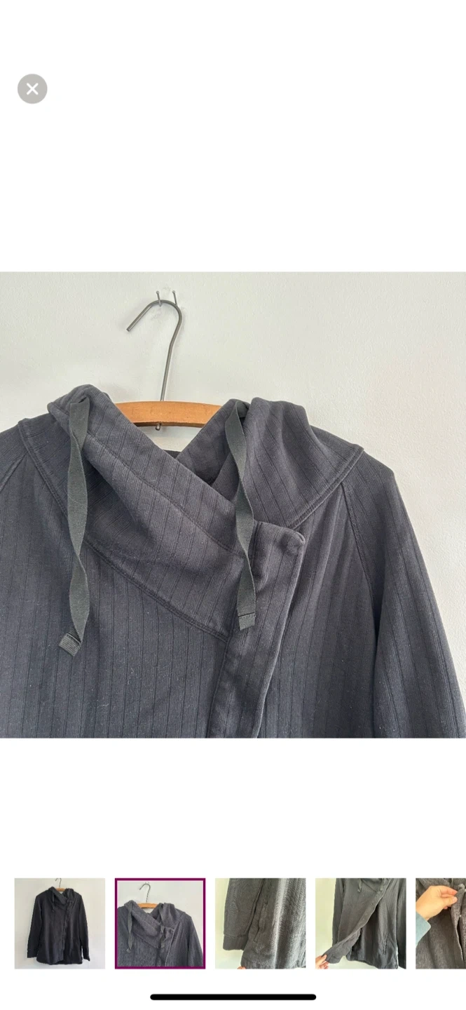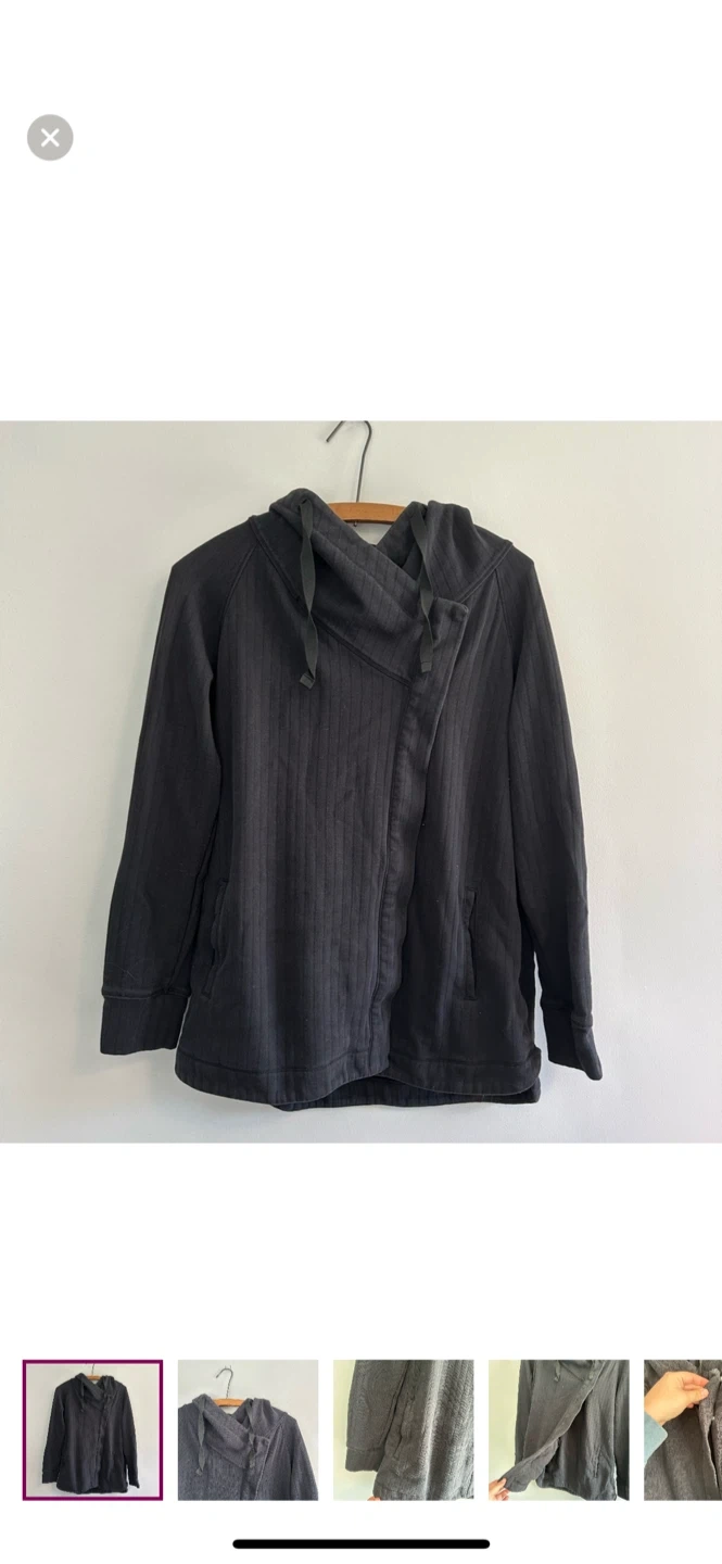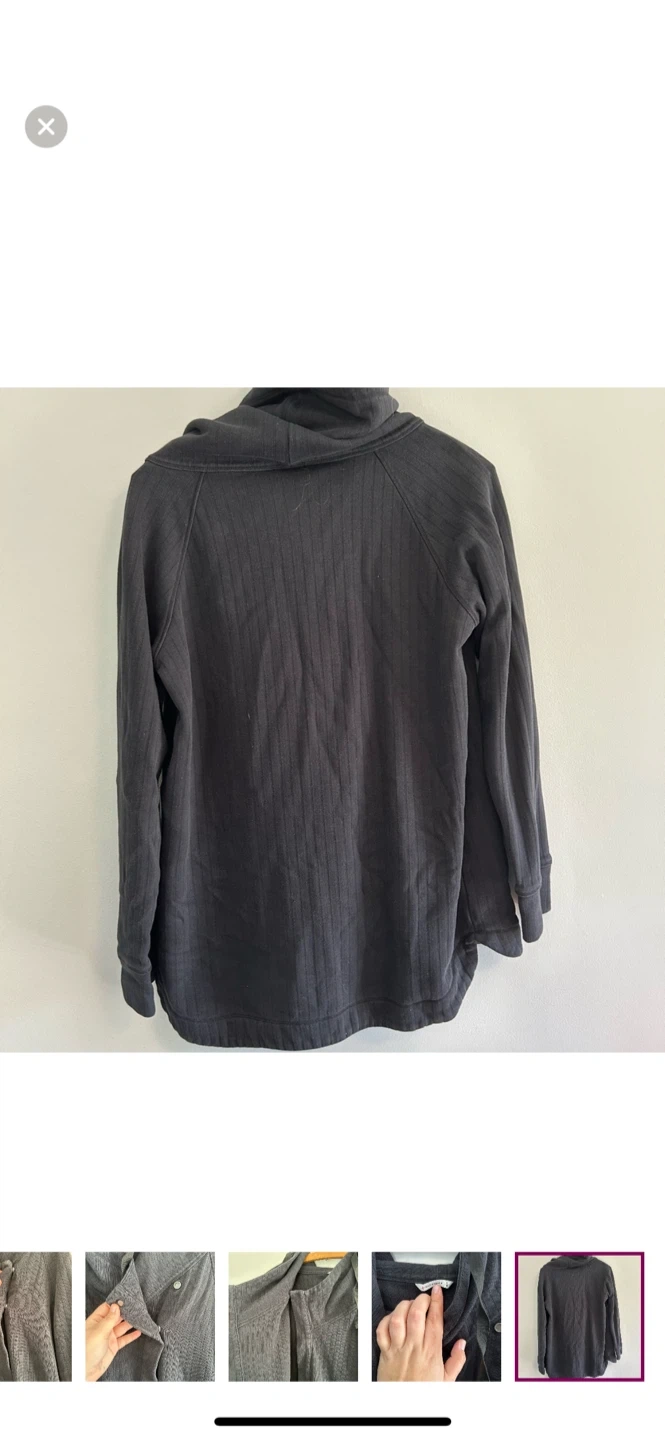 Shambhala brand. Long sleeve cowl neck cardigan with side wrap style button closure. Black In colour. Size small. Like new condition, light pilling.