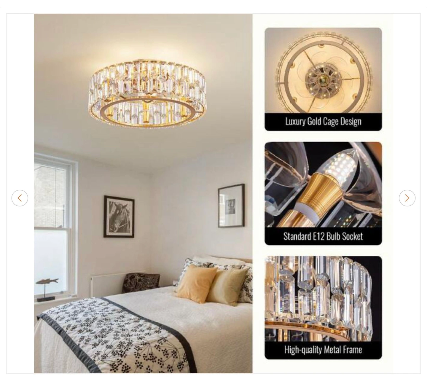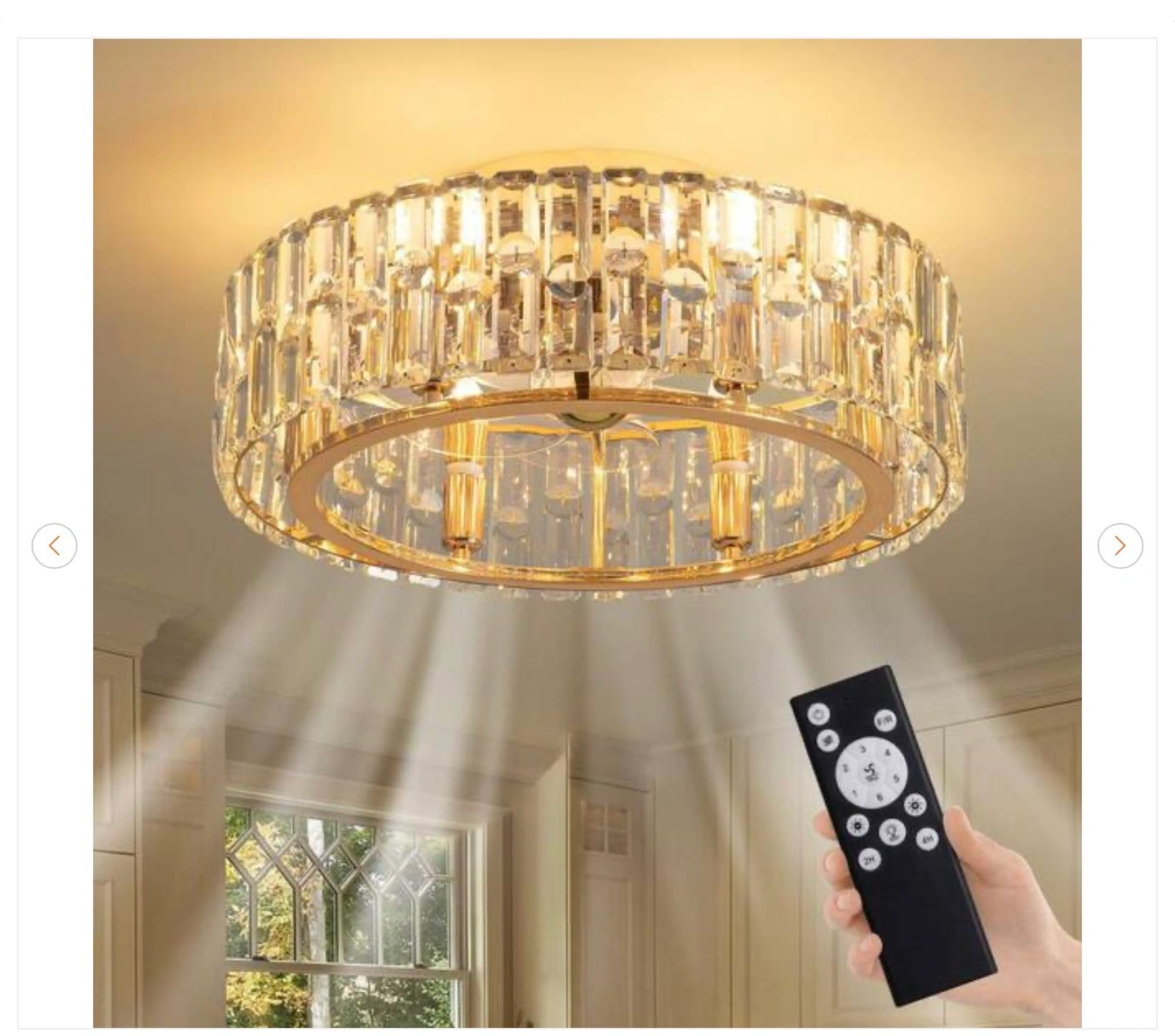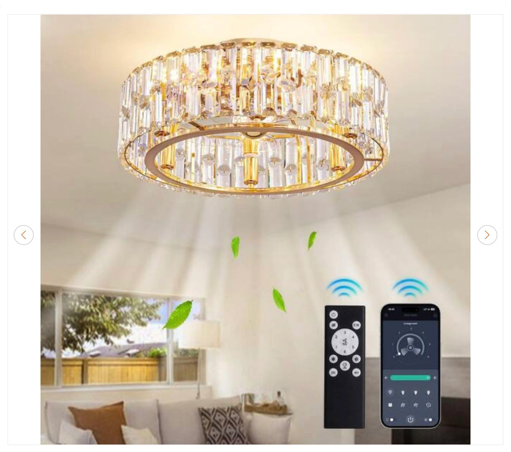 20 in. Indoor Modern Flush Mount Dimmable Gold Bladeless Ceiling Fan with Lights Reversible Rotation and Remote Control