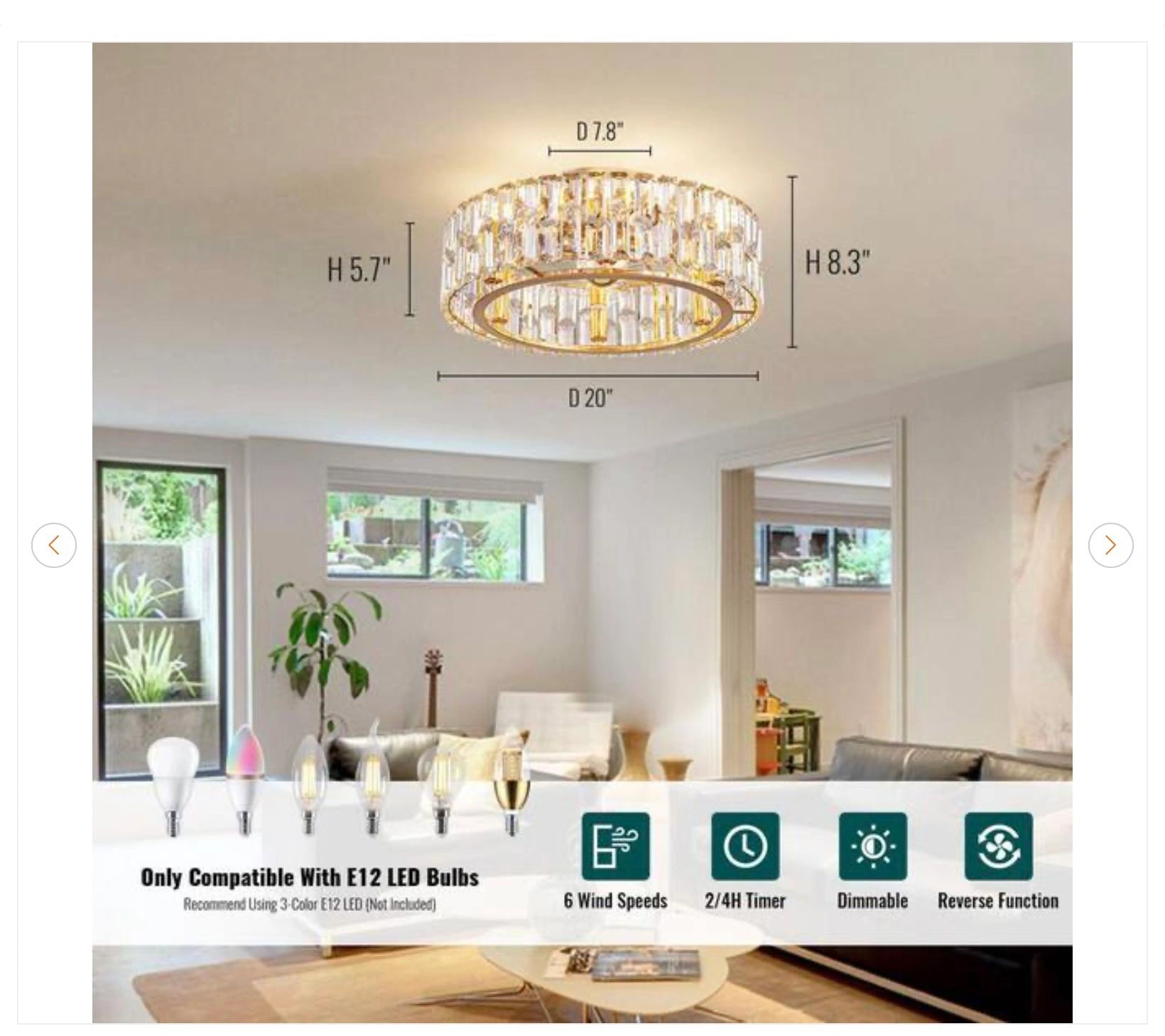 20 in. Indoor Modern Flush Mount Ceiling Fan - NEW