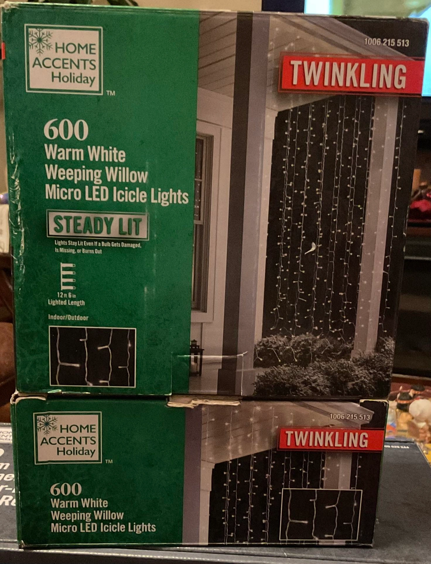 600 Warm White Weeping Willow Micro LED Icicle Lights $20 each box