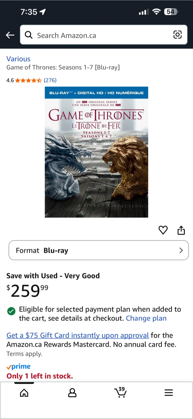 Selling a new, sealed Game of Thrones: Seasons 1-7 on Blu-Ray + Digital HD box-set! It includes over 30 hours of bonus features, including audio commentaries with the cast and crew. Get ready to dive into the Seven Kingdoms!