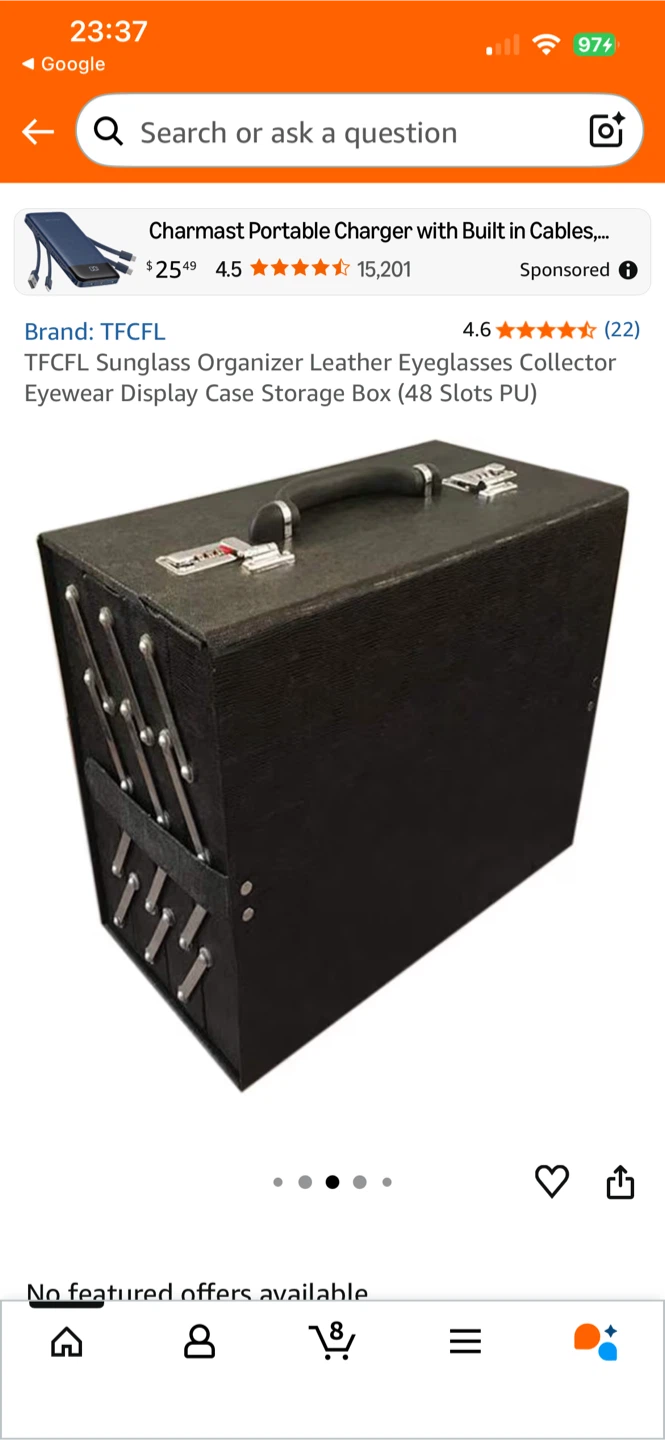 Selling a TFCLF sunglass organizer case, perfect for storing and displaying your eyewear collection. It has 48 slots and a leather exterior. Great for keeping your sunglasses organized and protected!