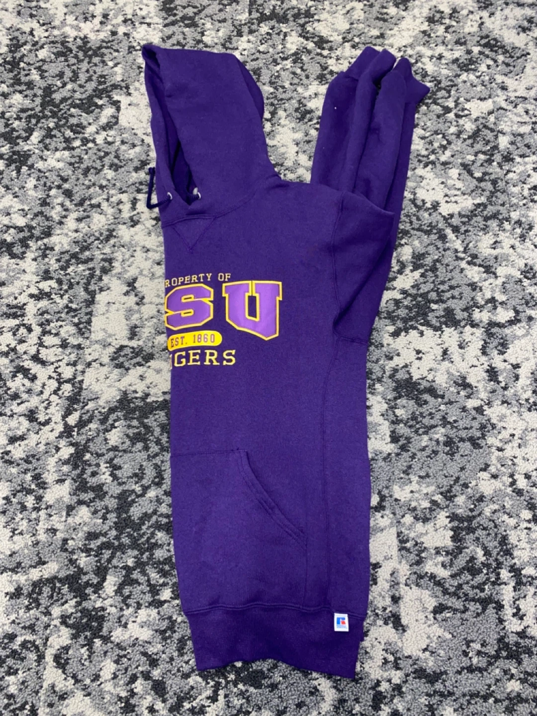 Selling a purple LSU Tigers hoodie made by Russell Athletic! It's in great condition and ready for a new home. Perfect for showing your team spirit!