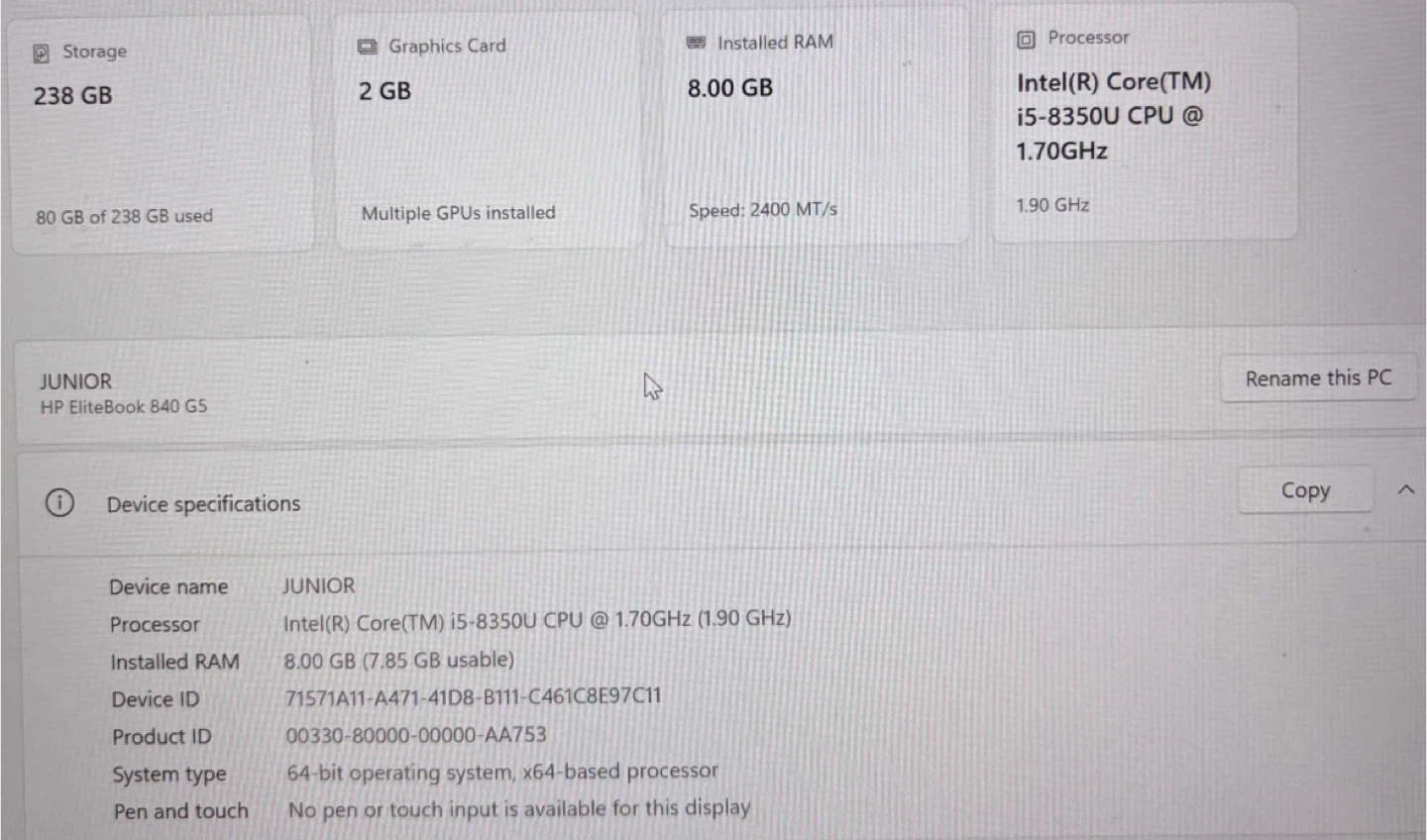 HP EliteBook Laptop - Silver