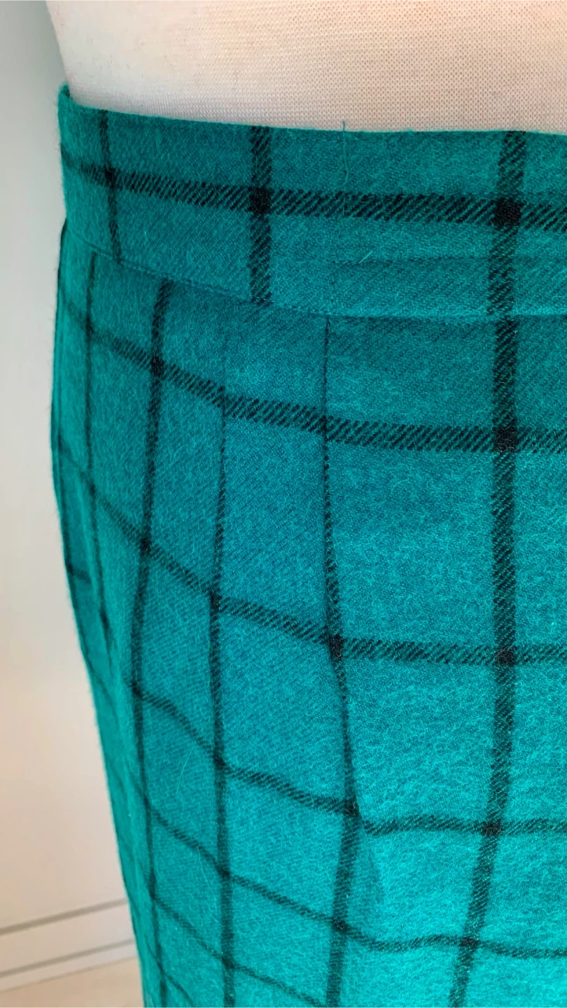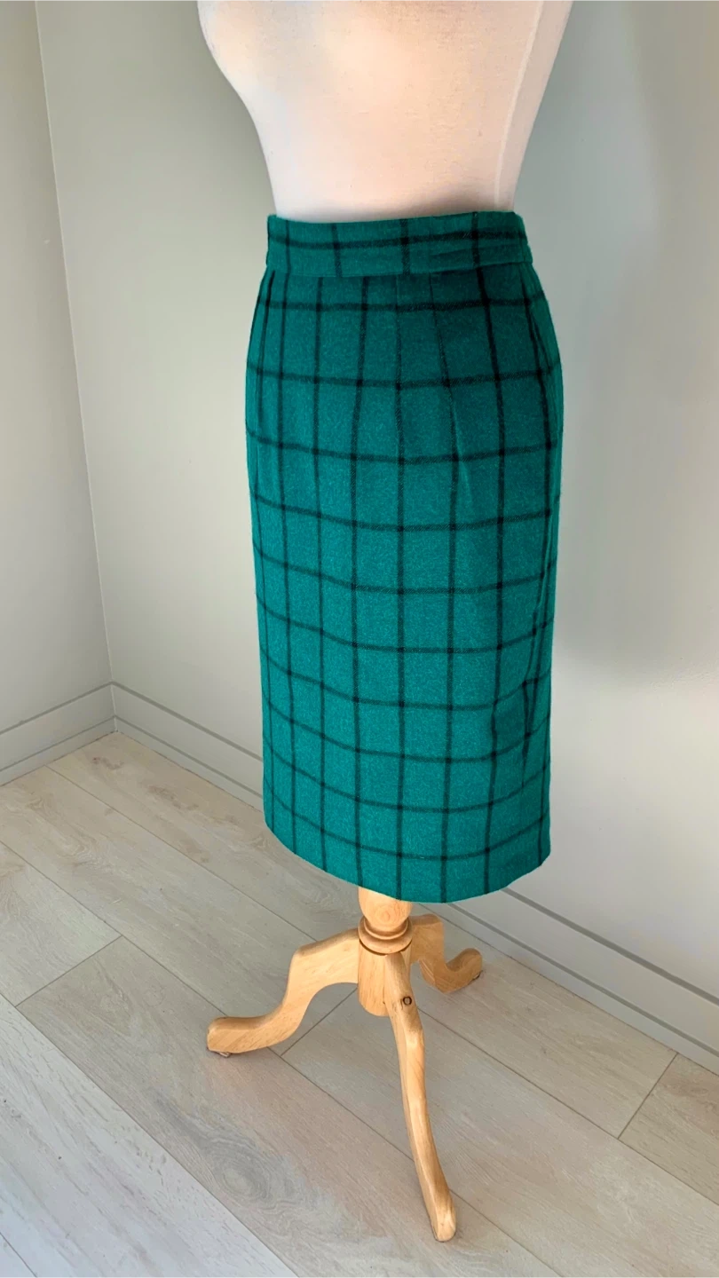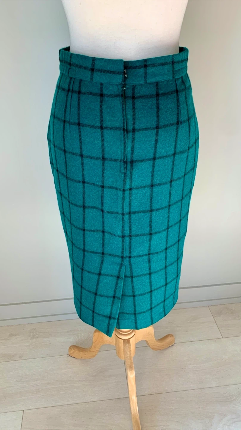 Vintage 90's Green Plaid Wool Pencil Skirt S/M (Petit 9)