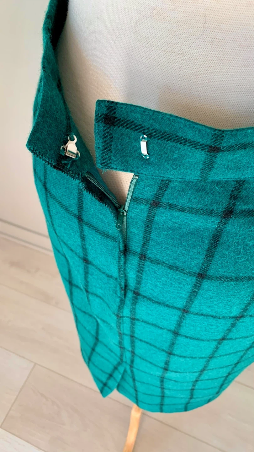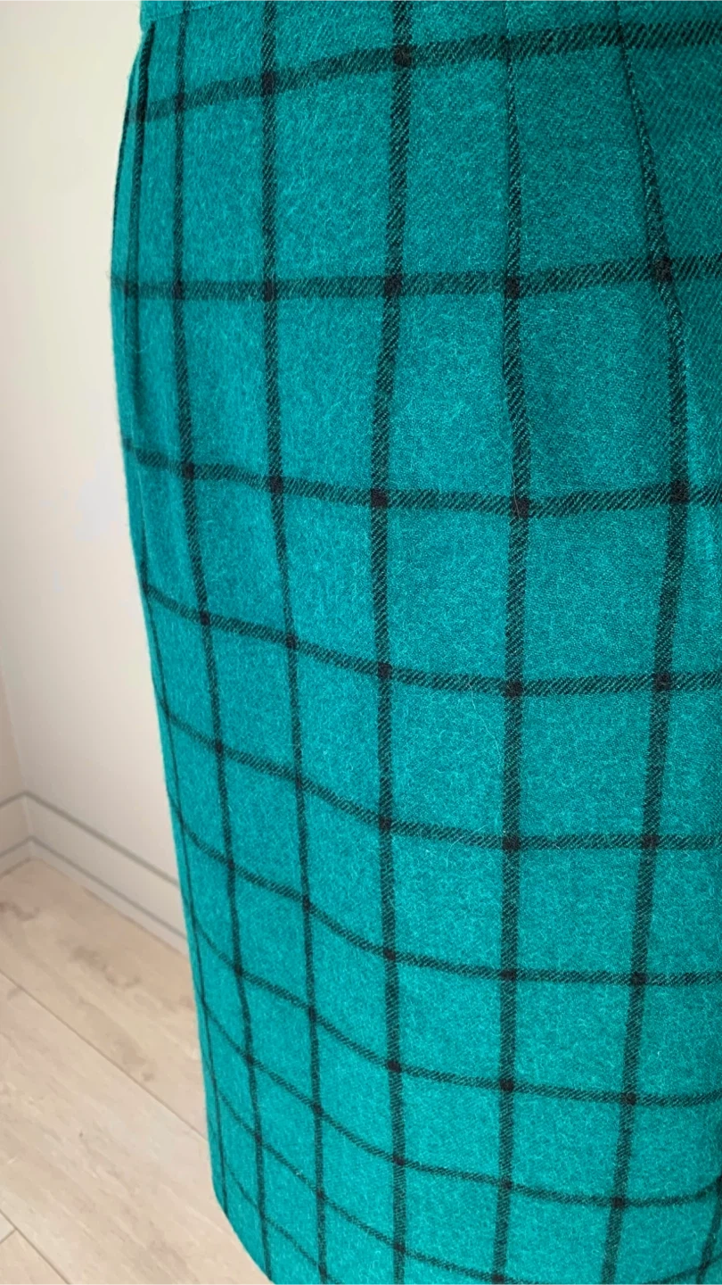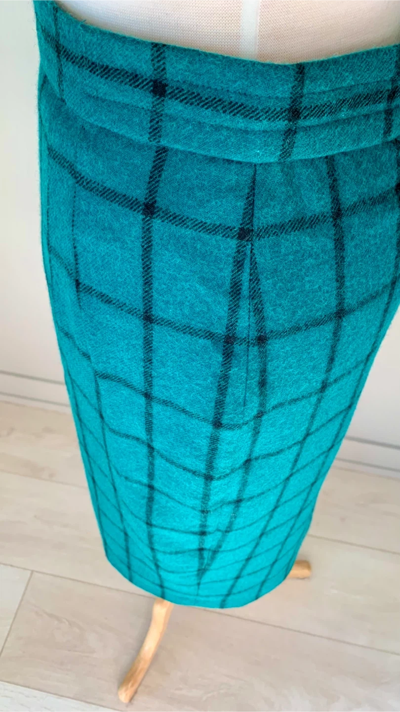 Vintage 90's Green Plaid Wool Pencil Skirt S/M (Petit 9)