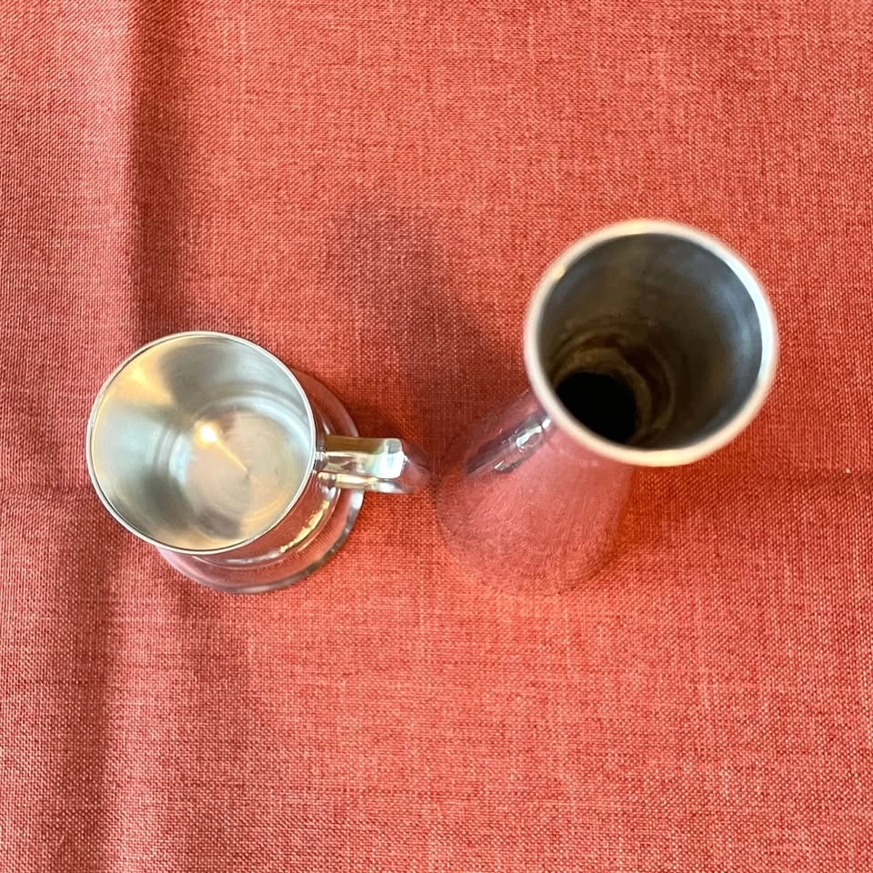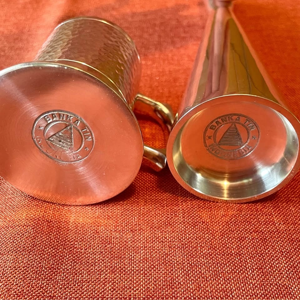 Vintage Mid-Century Banka Tin Indonesia Set – Bud Vase & Mini Tankard Mug
