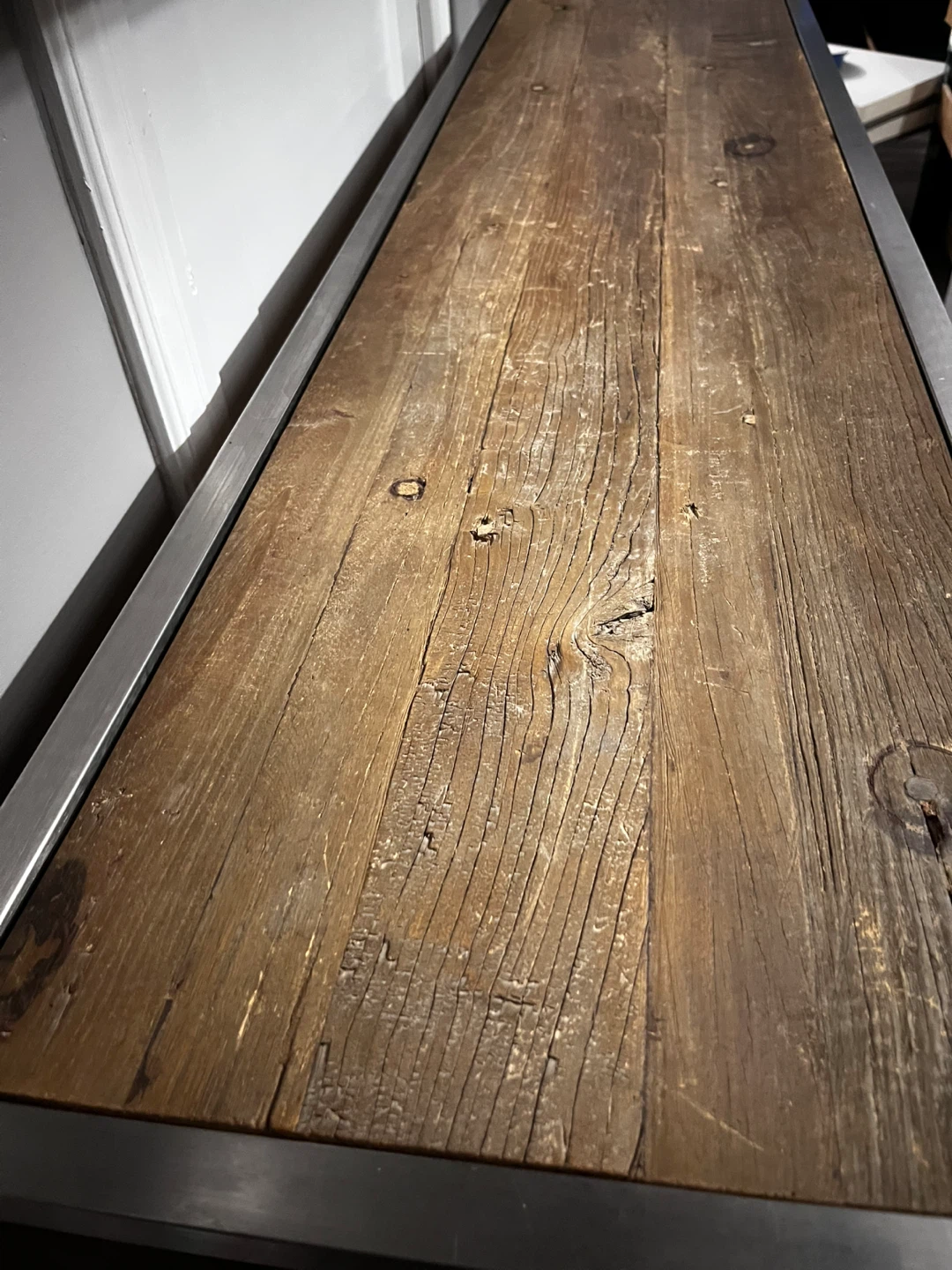 Beautiful Industrial metal frame with rustic wood shelves and 4 drawers. Great for storage or display. Would be great for a retail space too.