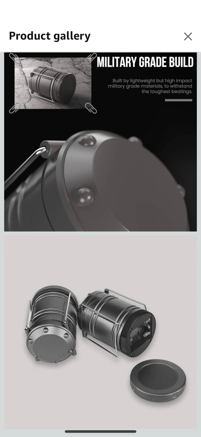 Get ready for camping or power outages with this handy collapsible LED lantern! It features 360-degree illumination thanks to its COB technology, providing brighter and softer light than other LED lanterns. It's built with military-grade materials, making it lightweight yet durable enough to withstand tough conditions. You can also control the brightness by adjusting the height of the lantern.