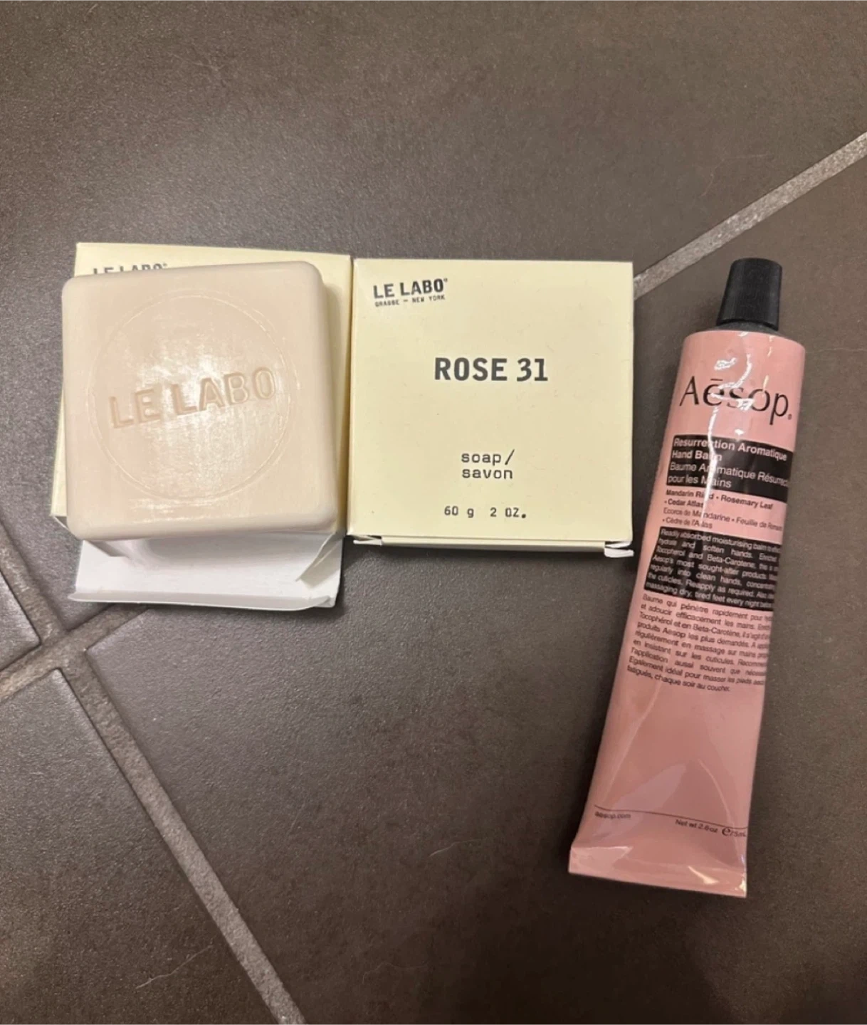 Selling two Le Labo Rose 31 soap (60g / 2 oz) and one Aesop Resurrection Aromatique Hand Balm (Net wt 2.6oz)