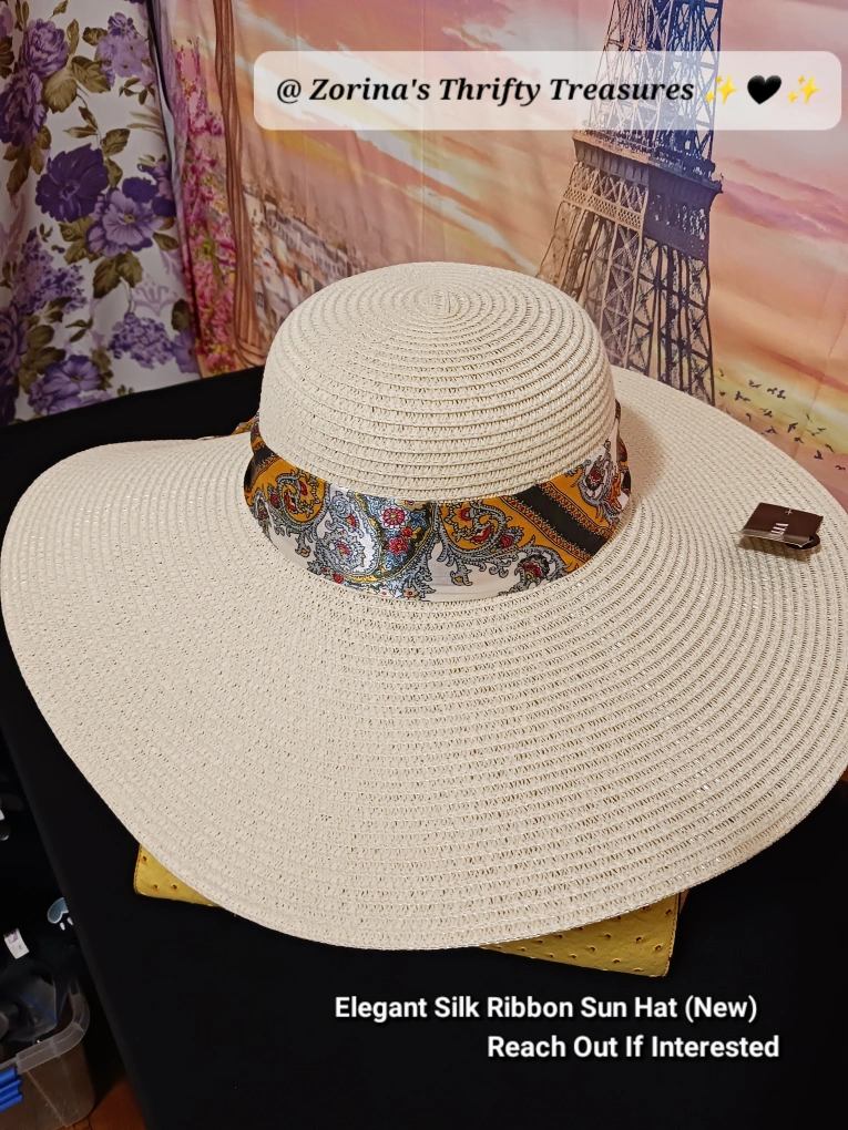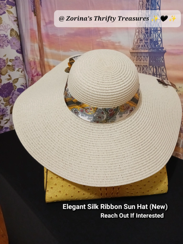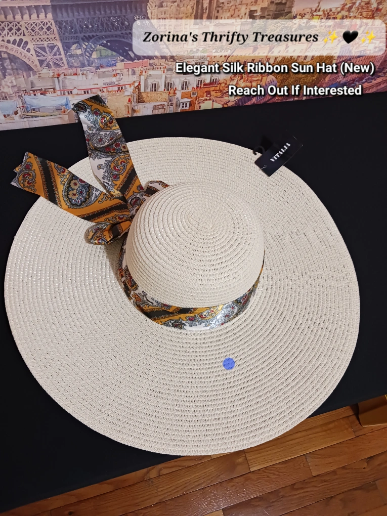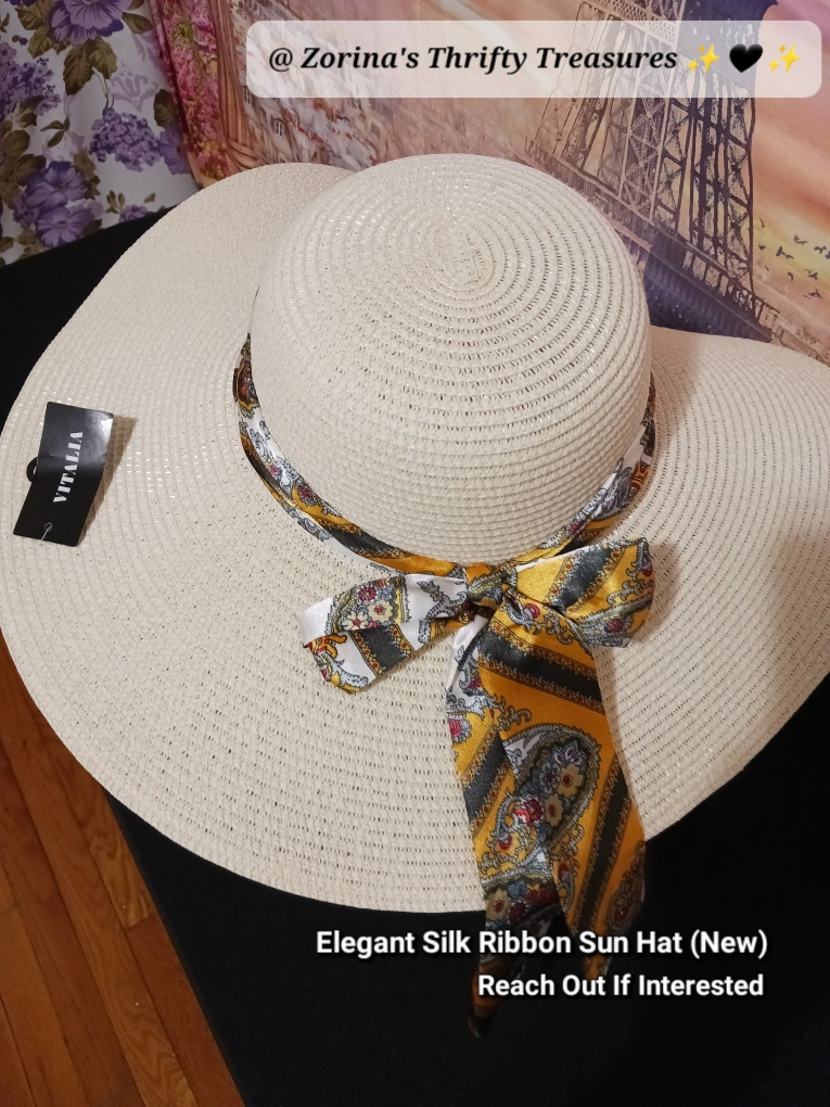 Check out this New Vitalia Elegant Sun Hat! It features a Beautiful Silk Ribbon Accent Perfect for Sunny Days and Adding a Touch of Ambiance to Any Outfit.