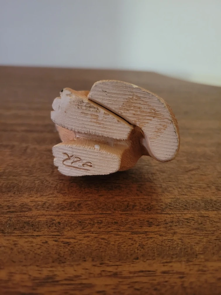 It is a hand-carved and hand-painted ceramic piece from Uruguay.