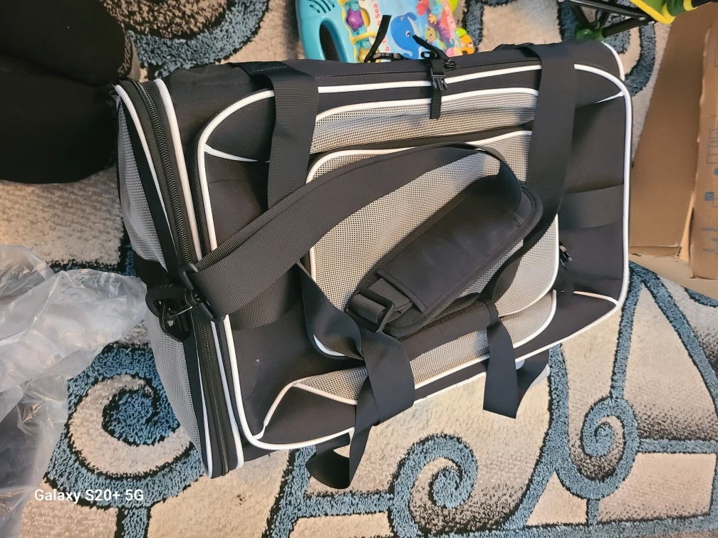 I'm selling a Petskd pet carrier in black. It's brand new condition and ready for your furry friend's adventures! This carrier is perfect for travel or trips to the vet.