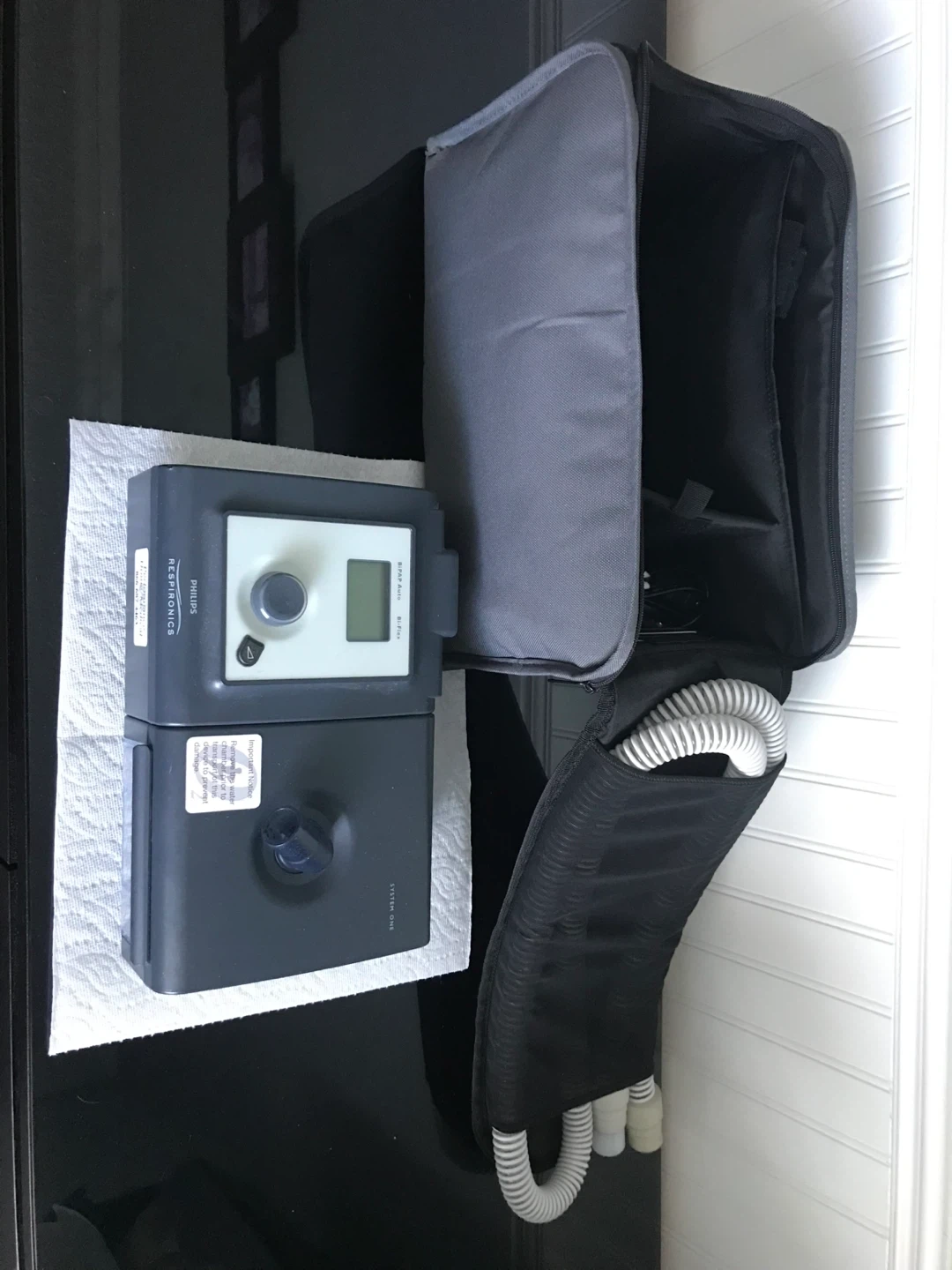 Selling a Philips Respironics REMstar Auto CPAP machine. It comes with its carrying case and accessories.