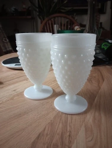 Hobnail Milk Glass Set Of 2 Anchor Hocking Goblets