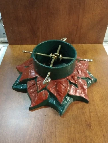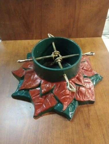 The Vintage Christmas Tree Stand Cast Iron with a beautiful Pointsettia Design is a charming addition to any holiday decor. Made of sturdy cast iron, this medium-sized stand features a classic Christmas flower pattern that adds a festive touch to your Christmas decor. The set includes the stand and screws for easy assembly, perfect for those who appreciate vintage pieces from the 1950s. Very heavy, and a true mid-century modern classic item!