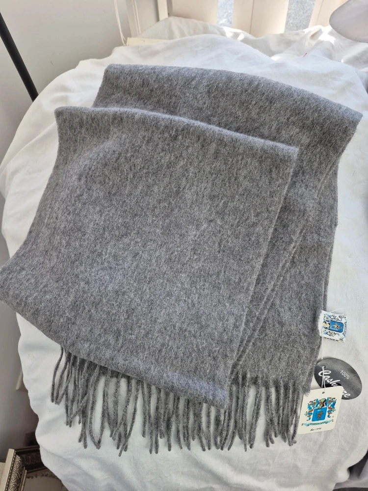 Medium grey color 100% pure cashmere scarf, never worn. Brand new. With tags.