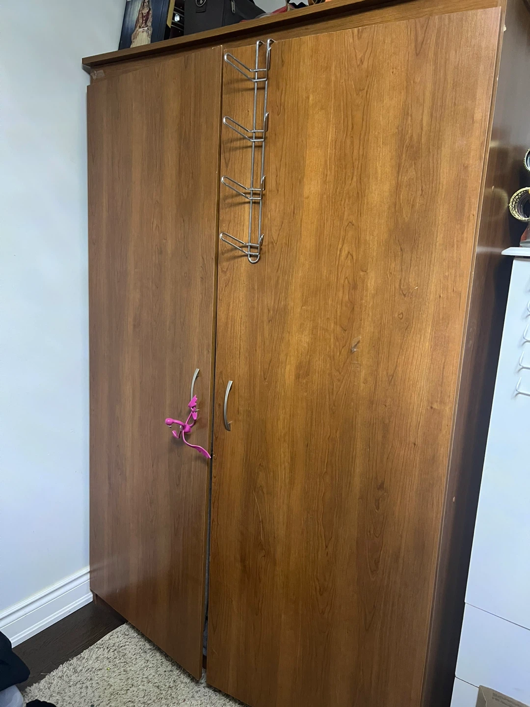 Selling a large wooden armoire or wardrobe. It's in good condition and would be great for extra storage!