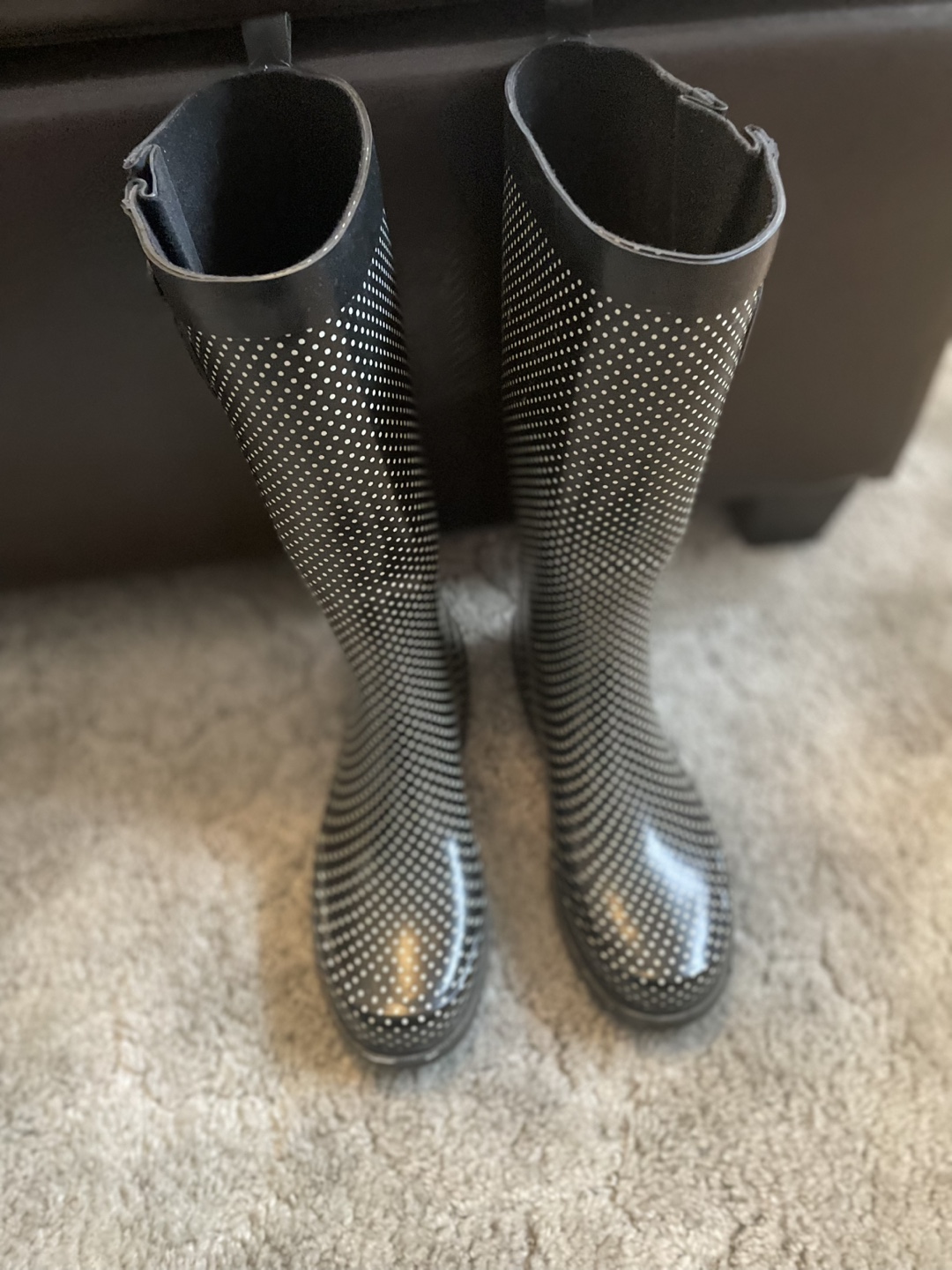 Cute Capelli New York women rain boots in a size 8 They feature a black and white polka dot pattern and have never been used Perfect for those rainy days take only cash no e-transfers please thank you