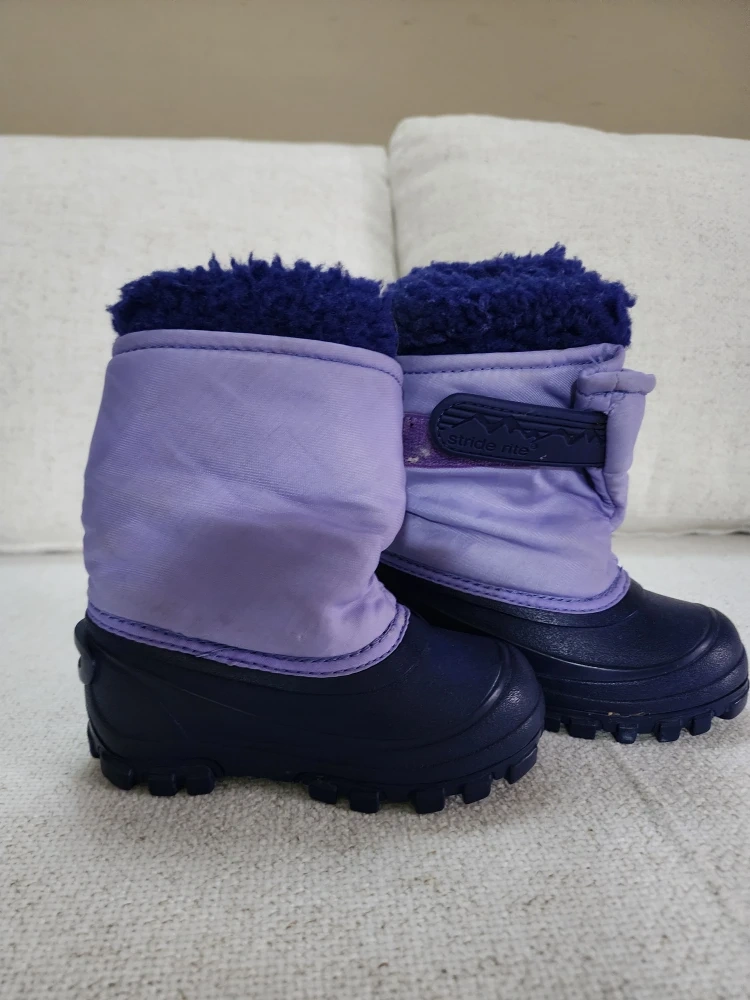 Keep your little one warm with these Stride Rite snow boots! They're a cute purple and navy color and in great condition. Perfect for playing in the snow!