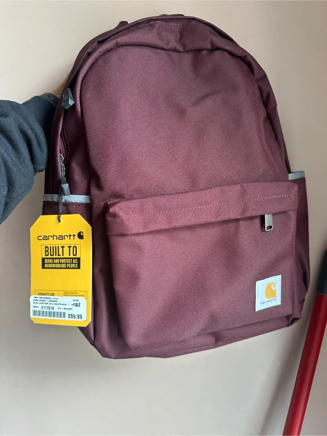 Selling a Carhartt Classic Backpack in burgundy. This backpack is in great condition and ready for a new owner! Perfect for school, work, or everyday adventures. The Carhartt logo is visible on the front.