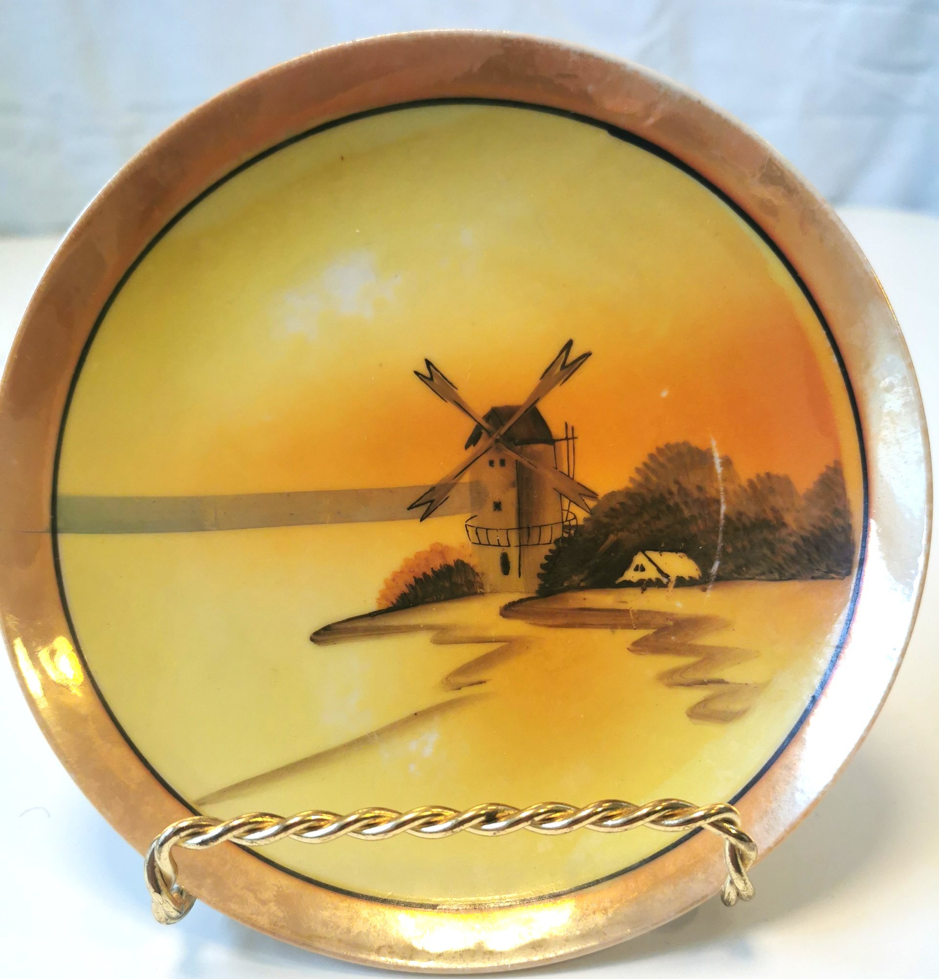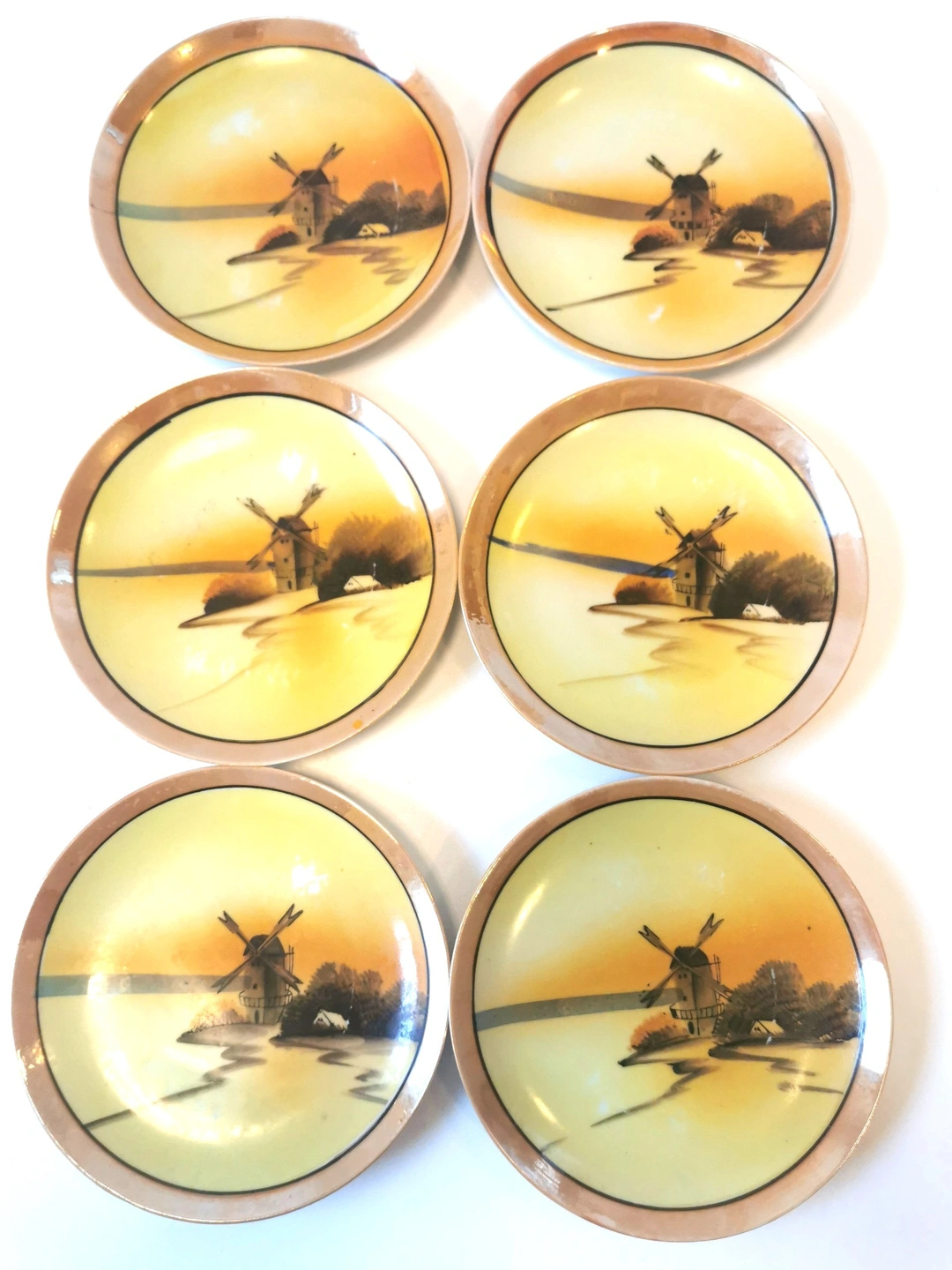 6 1950s MADE IN JAPAN Lusterware Plates Windmill Countryside