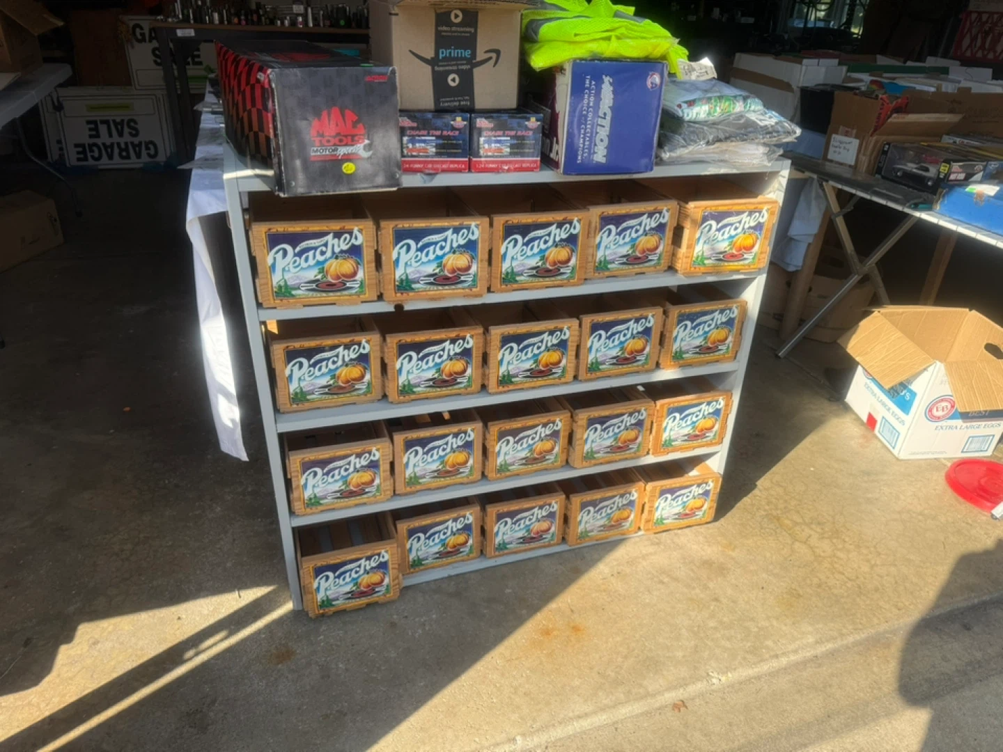 Selling vintage wooden crates with a "Peaches" design. These crates are perfect for adding a rustic touch to your home decor or for storage solutions. They have a charming, old-fashioned look. Grab these crates to add a touch of vintage charm to your space! Holds 45 records 21 crates holds 40 records