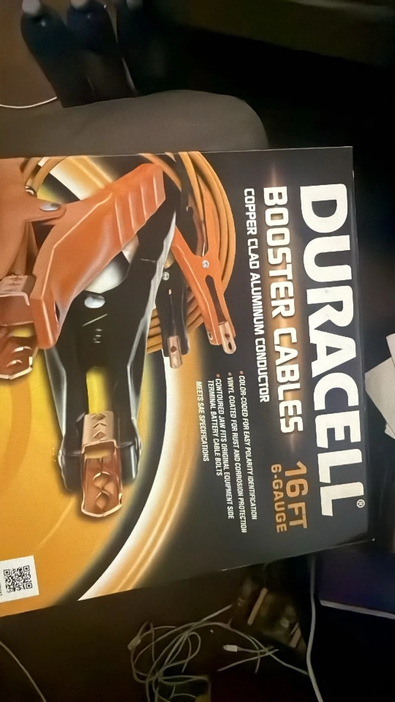 I'm selling a brand new set of Duracell 16FT 6-Gauge Booster Cables! The box includes helpful information on selecting the right gauge and length for your vehicle. These heavy-service cables feature copper-clad aluminum conductors and colour-coded clamps for easy polarity identification. They're vinyl-coated for rust and corrosion protection, ensuring they're ready for any roadside emergency!