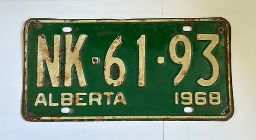 1968 LICENSE PLATE ALBERTA CANADA GREEN AND WHITE. In ok used condition with rust and wear. Please review photos to ensure you are satisfied. Thank you.