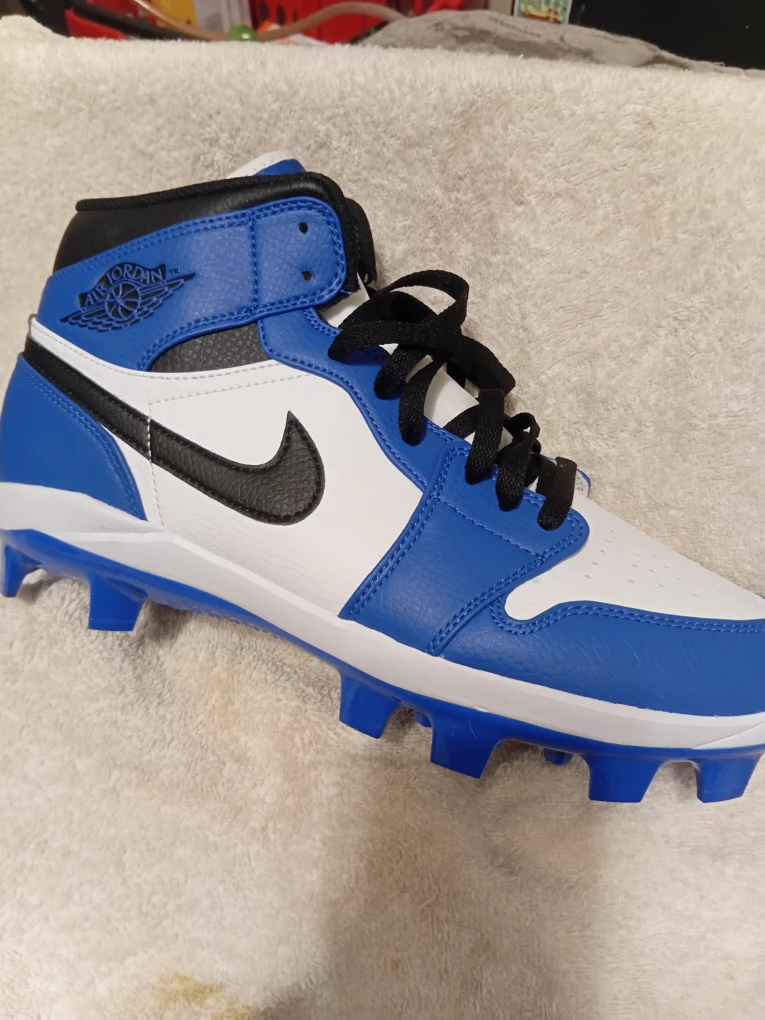 Selling a pair of Air Jordan 1 High baseball cleats in a striking blue and white colourway. These cleats combine iconic style with performance for the baseball field. Perfect for adding some flair to your game!