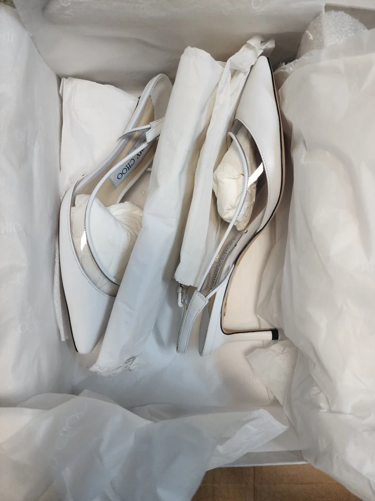 These Jimmy Choo heels are brand new and come in the original box! They are a beautiful white color and size 37. Perfect for a special occasion or to add a touch of elegance to any outfit Size 5 & 7 Available US NEW IN BOX , ACTUAL PHOTOS SHOWN