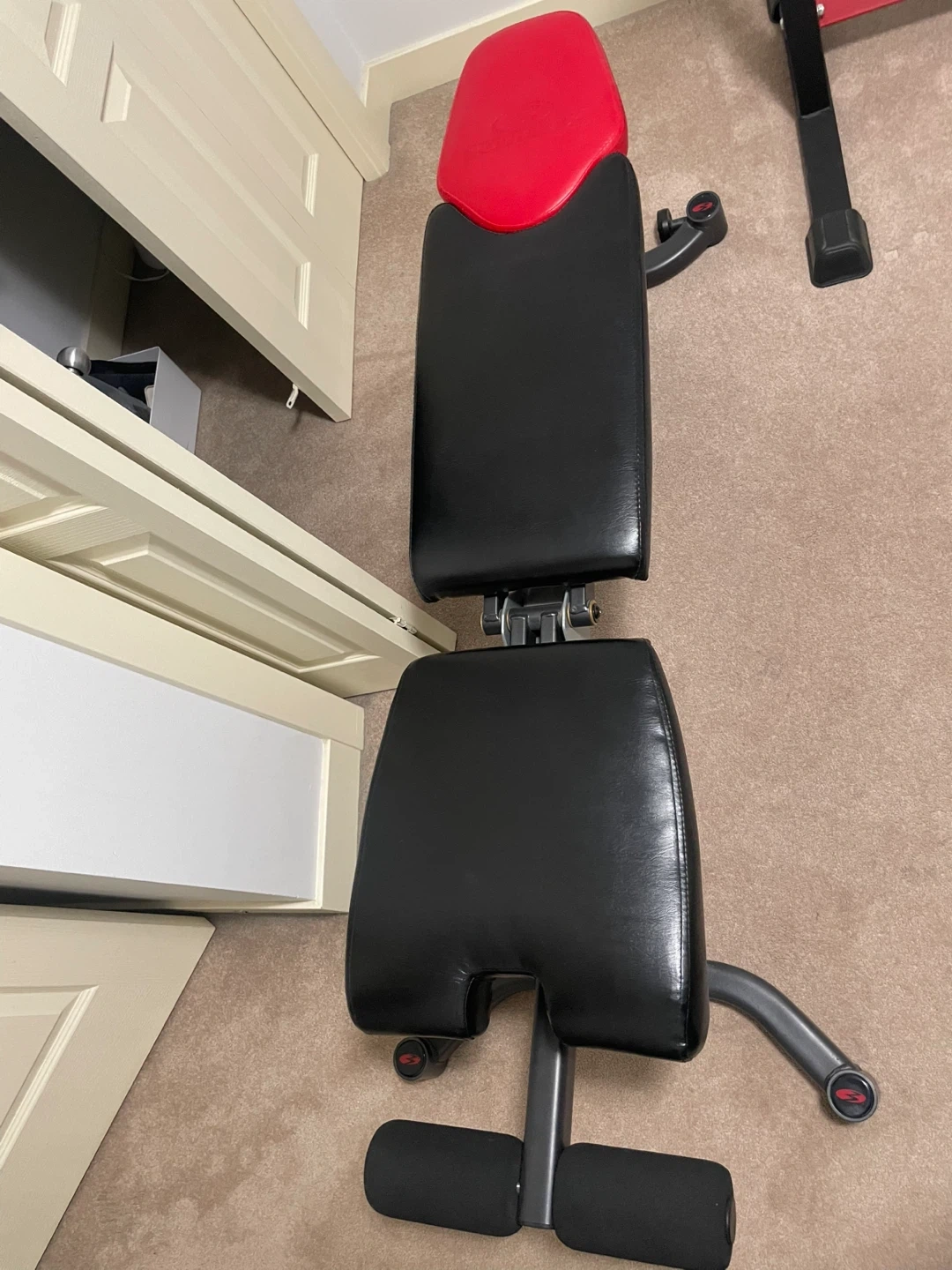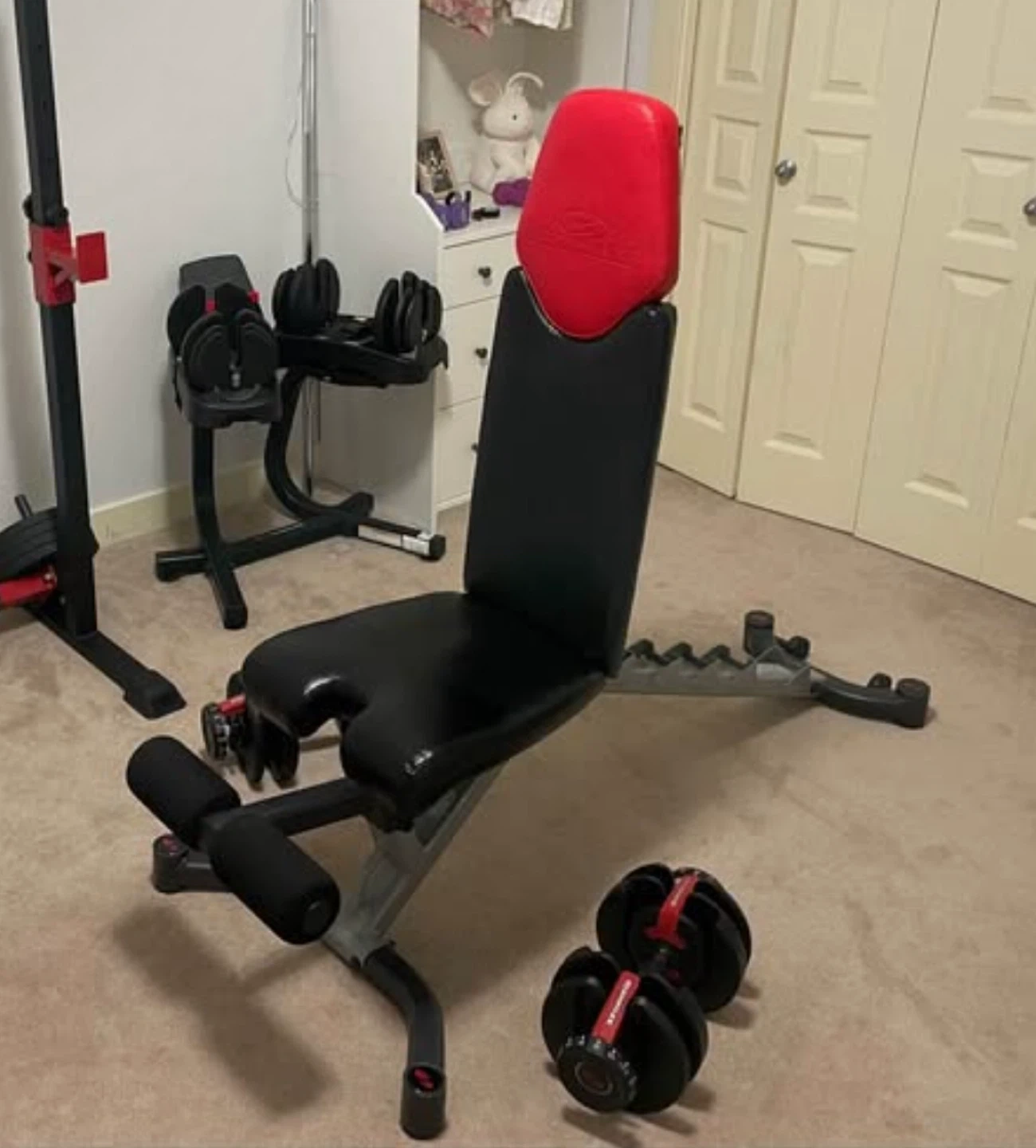 Selling a Bowflex adjustable workout bench. It's in great condition and ready for your home gym! The bench is adjustable to various angles for different exercises, making it a versatile piece of equipment for any fitness enthusiast